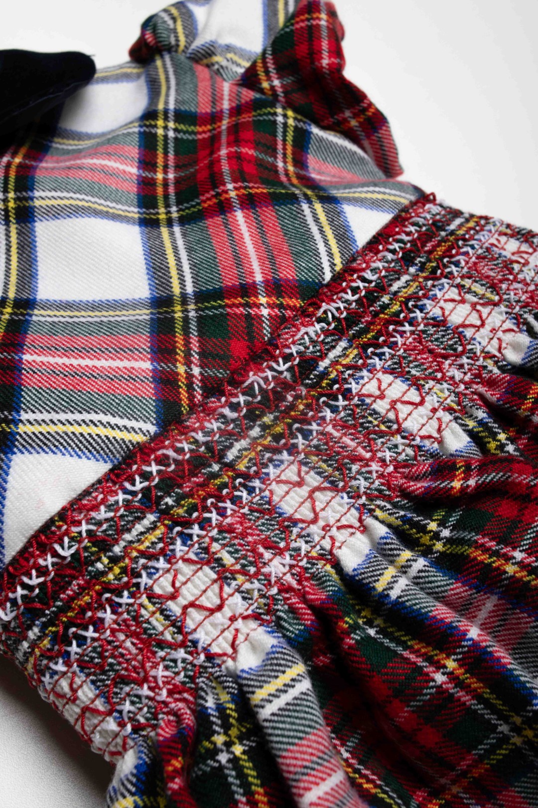 Il capo รจ caratterizzato da una fantasia scozzese sui toni del bianco e del rosso all-over.