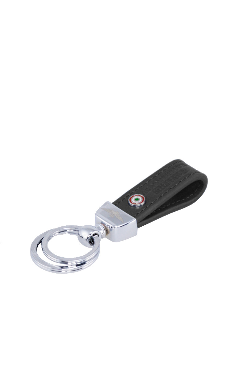 Portachiavi in pelle con doppio anello e cinturino in pelle. Misure: 9 cm