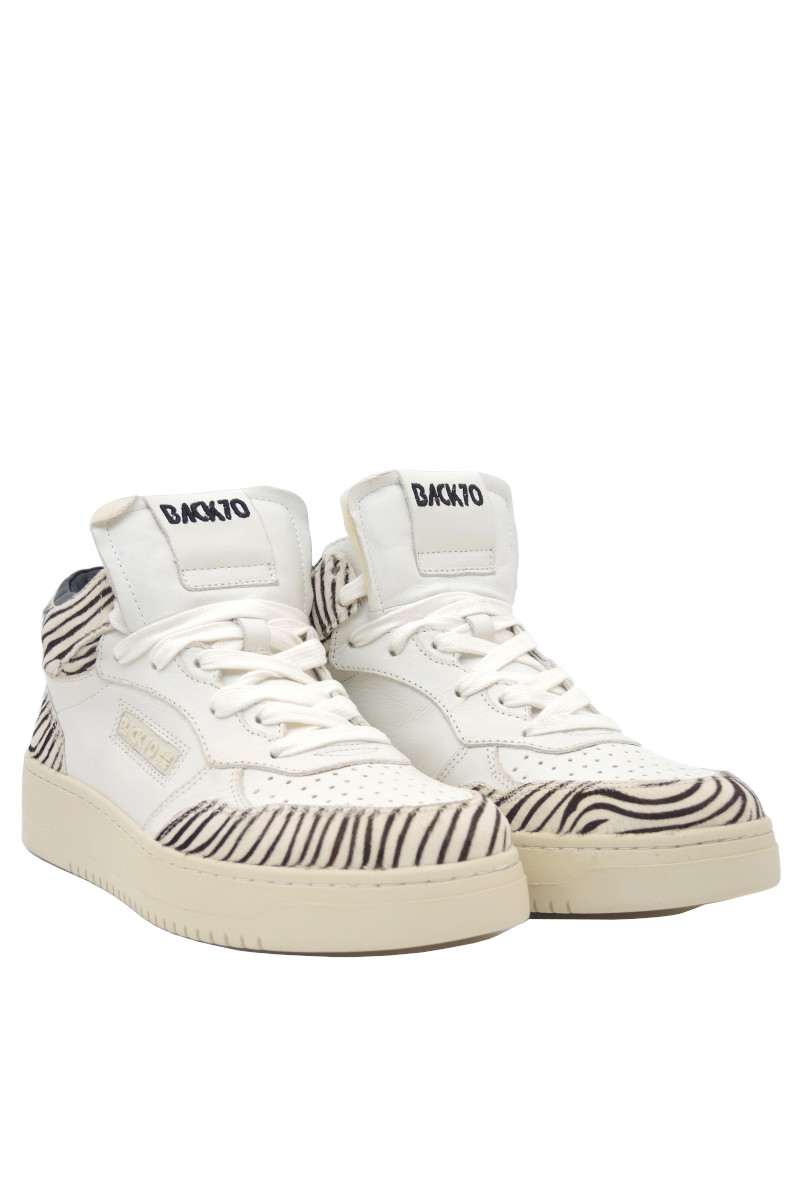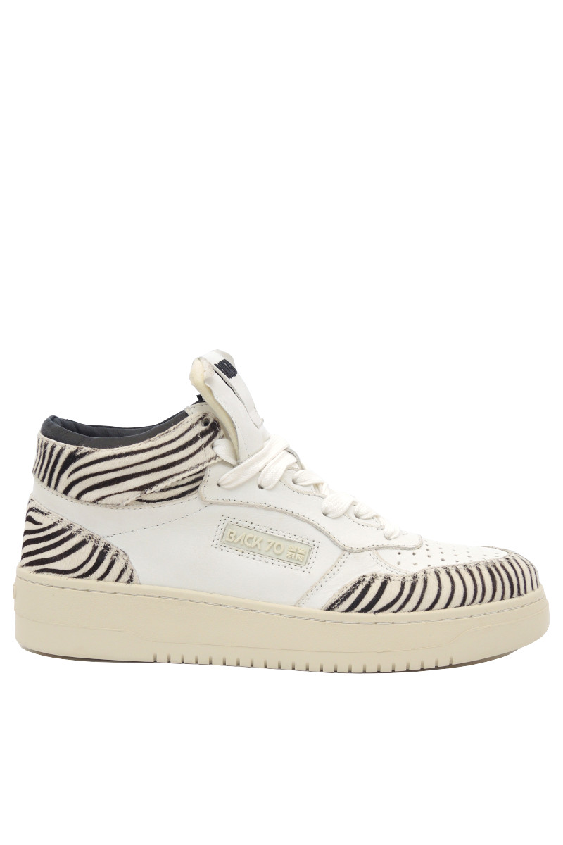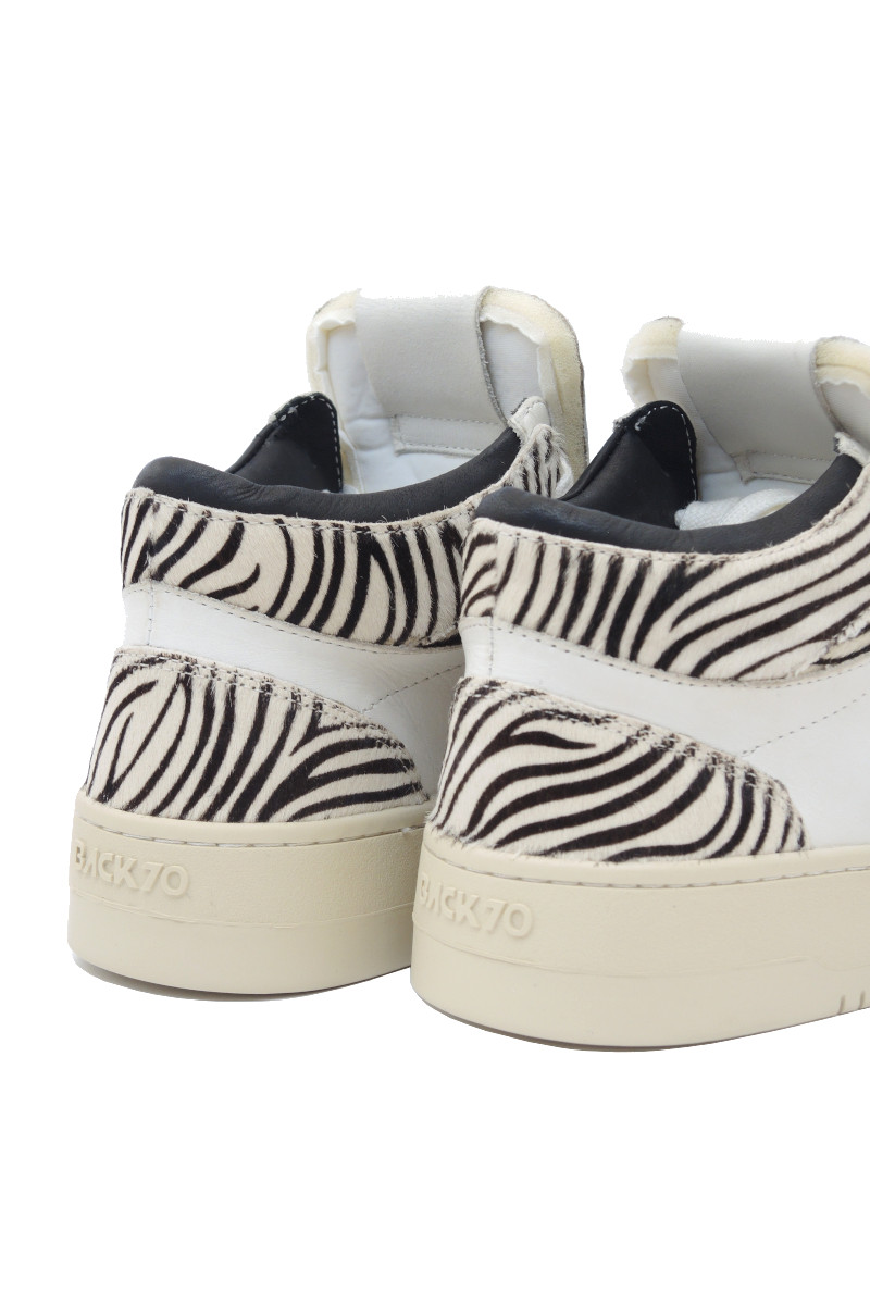 Sneaker alta donna BACK70 in pelle color Bianco con dettagli animalier zebrati.