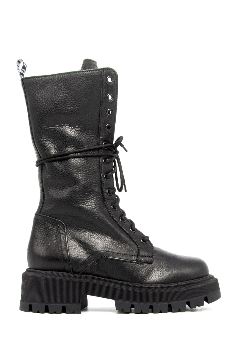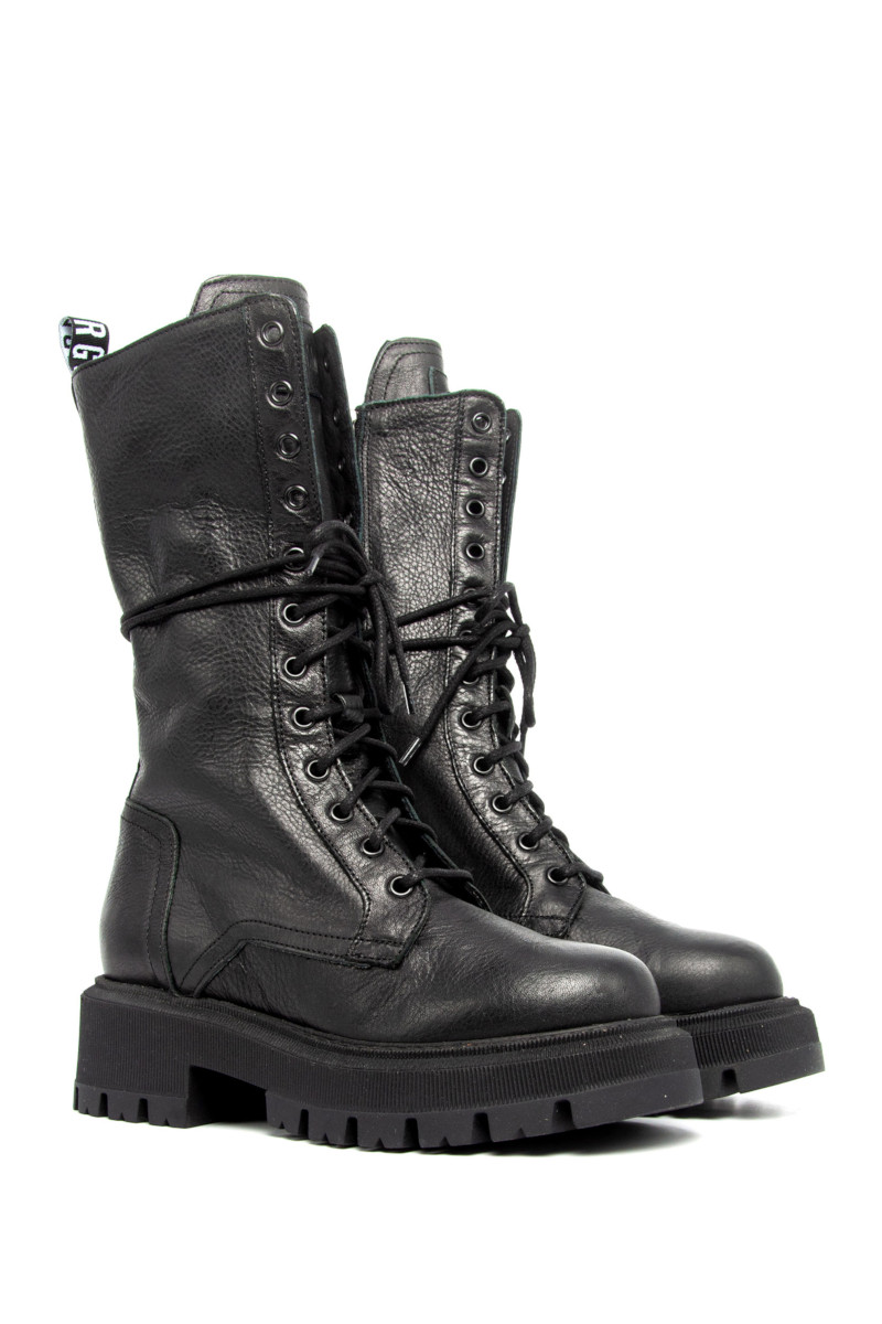 Anfibio donna Bikkembergs in pelle color nero con suola carrarmata in gomma. Anfibio alto con comoda cerniera.