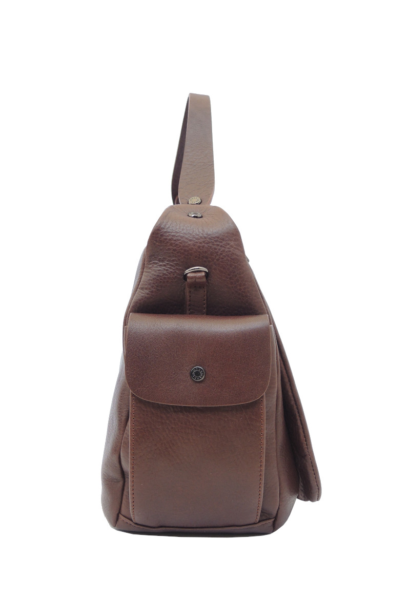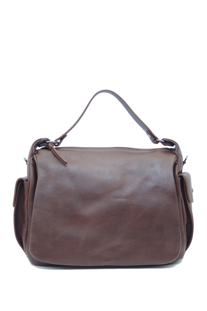 Borsa in pelle color Nero e Caffè by Bruno Rossi. Borsa con manico corto e tasche laterali. Tracolla lunga regolabile.