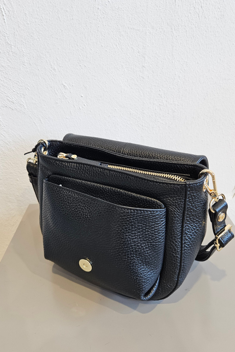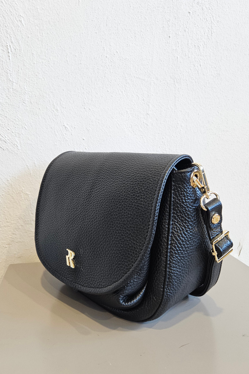 Piccola borsa modello postina con chiusura patta e bottone automatico. Borsa Bruno Rossi Made in Italy color bordeaux e nero. Comoda tracolla regolabile e taschine interne per la massima praticità .