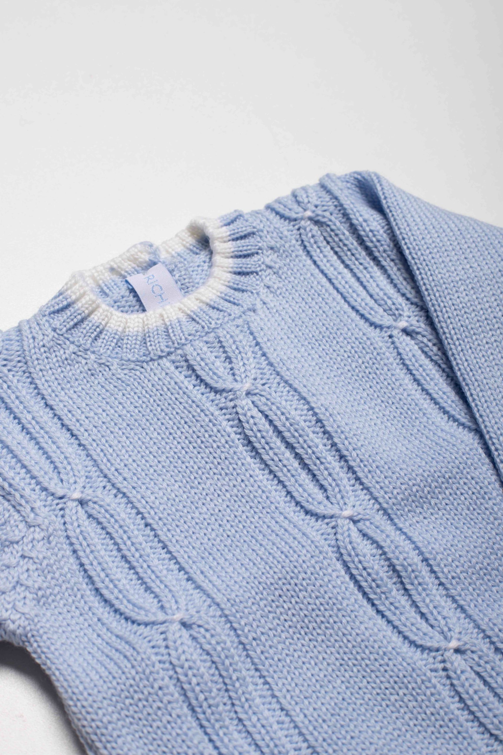 Completo bebè in maglia a trecce (azzurro e rosa)