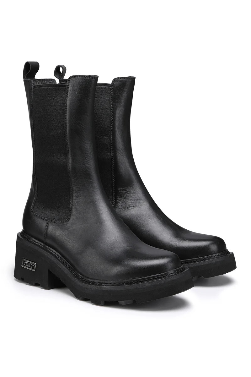 Stivaletto modello beatles con elastici laterali e tomaia in vera pelle color nero. Semplice ma essenziale con comodo tacco 5 cm. Indossalo con abiti, gonne e pantaloni. Indossali il giorno e la sera per valorizzare ogni tuo outfit.