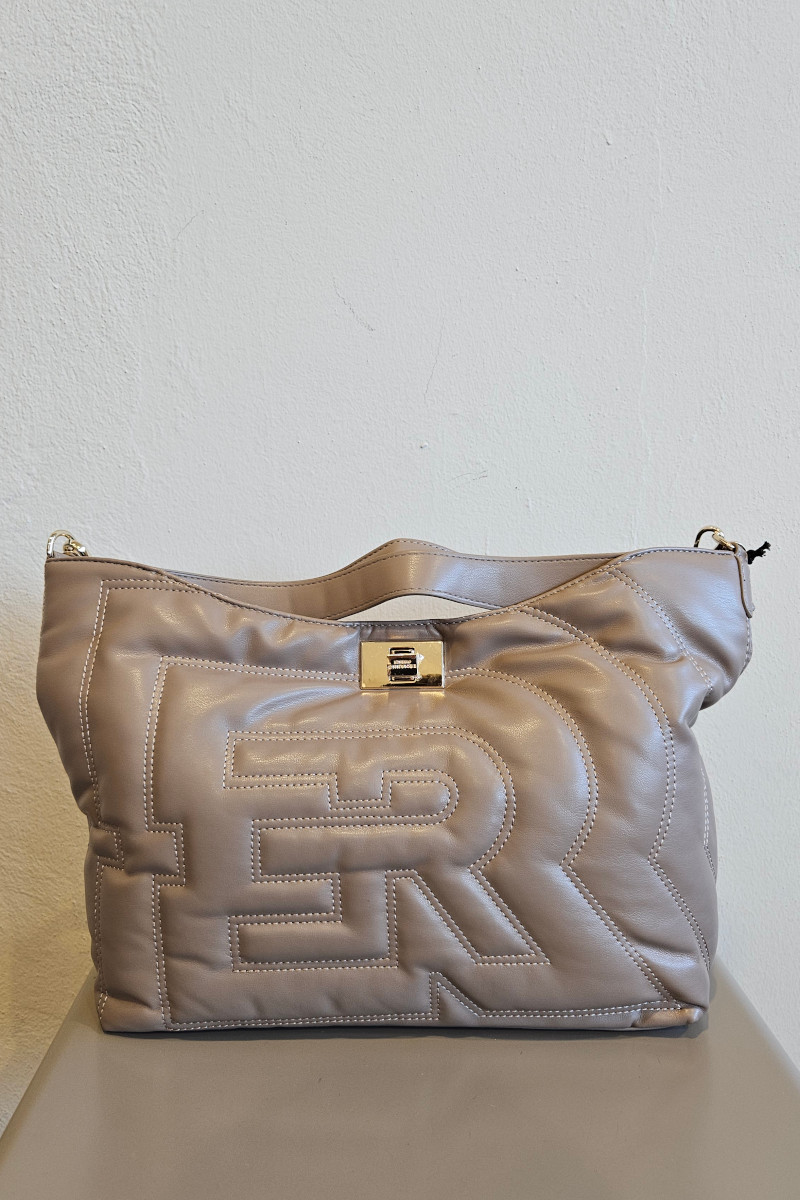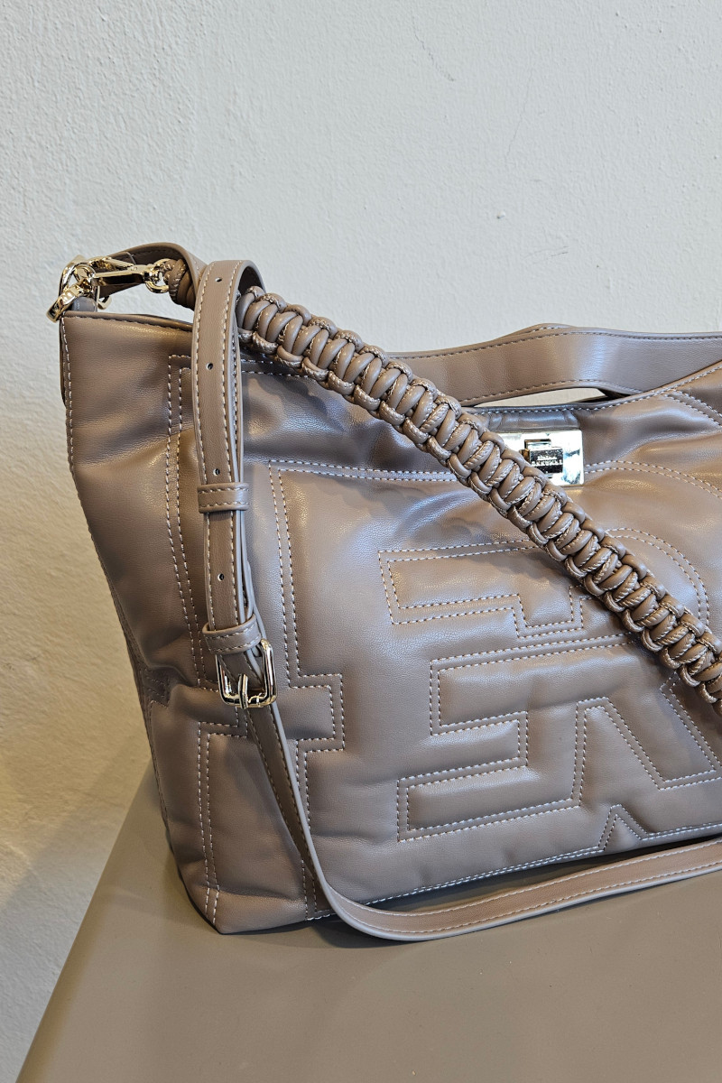 Borsa a mano Ermanno Firenze con fantasia trapuntata che crea il logo ER. Realizzata in simil pelle con tracolla effetto intrecciato e tracolla lunga semplice che si puรฒ regolare. Borsa con chiusura bottone. Ampia, bella e comoda. Perfetta tutto l’anno.