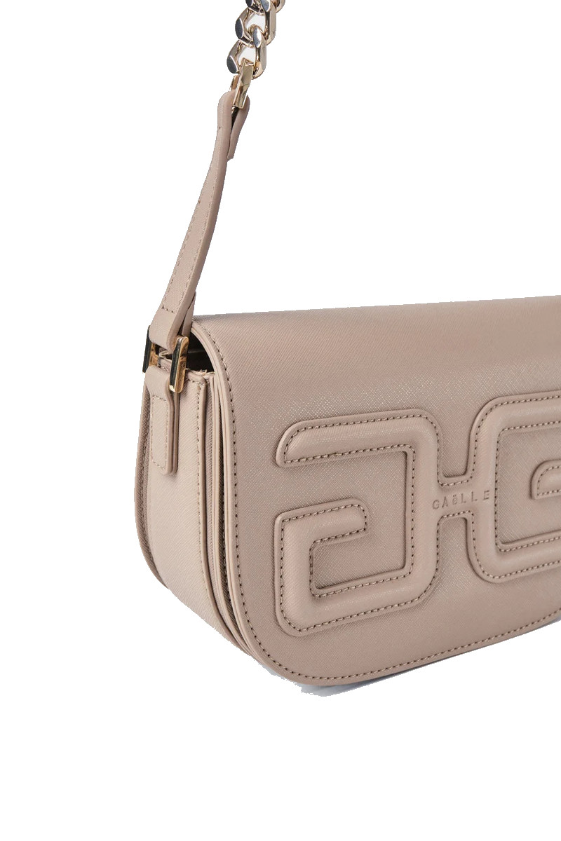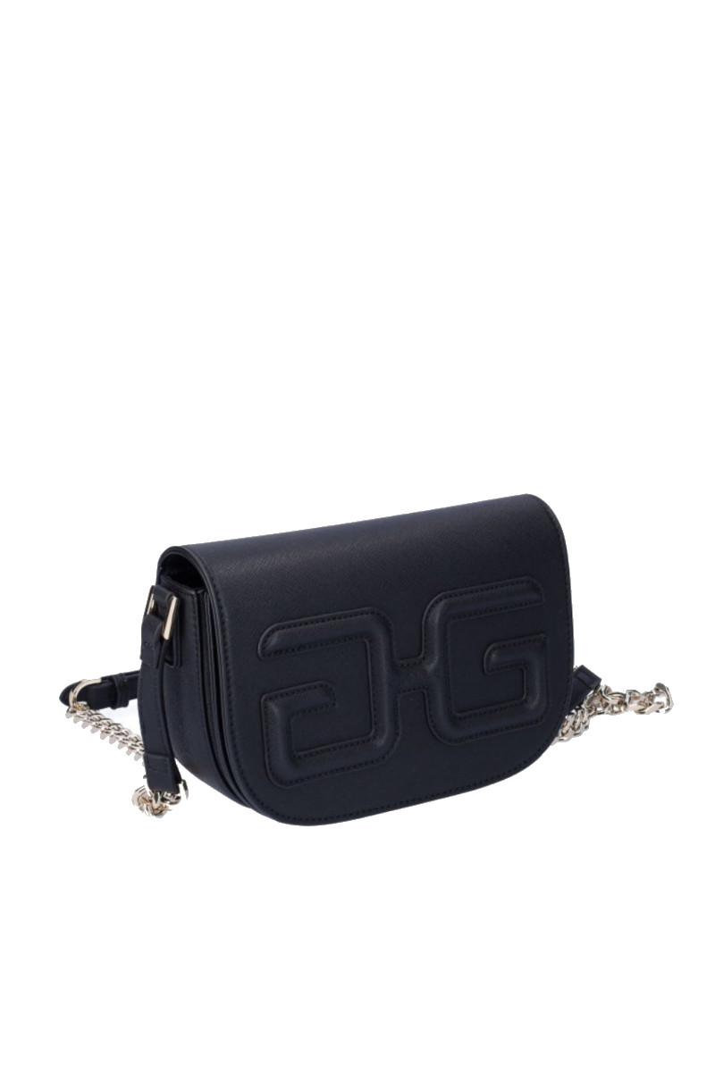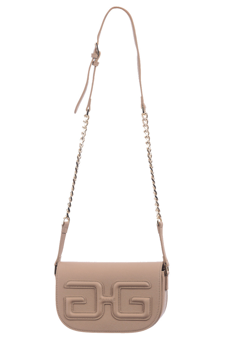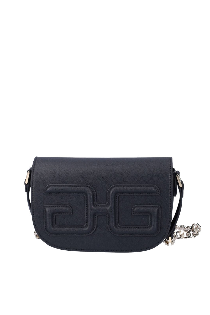 Piccola borsa tracolla in ecopelle saffiano con logo double G su patta anteriore e chiusura bottone. Questa tracollina giovanile e versatile รจ perfetta per ogni outfit. Rifinita in ogni minimo dettaglio ti permette di portare con te lo stretto necessario. La tracolla in simil pelle e catena le conferisce un tocco di luce. Misure: 21x12x6 cm
