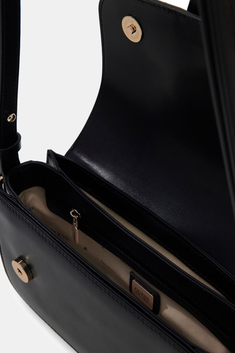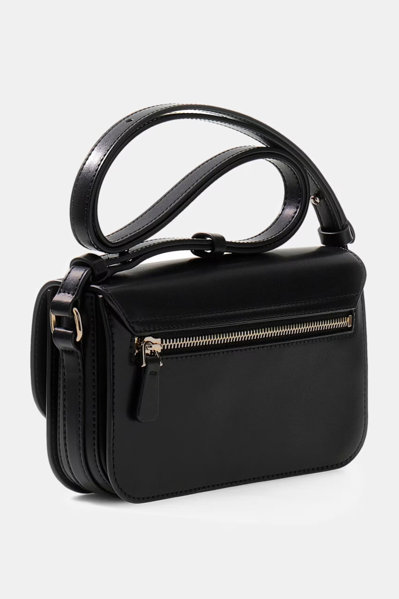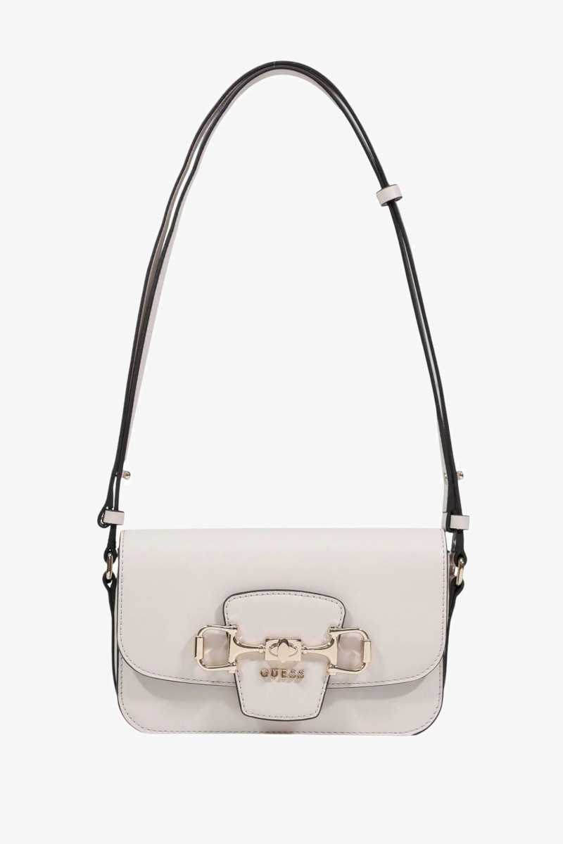 Piccola postina Guess realizzata in simil pelle color stone e nero. Modello con tracolla regolabile, patta chiusura bottone e 2 scomparti interni. Minimal e raffinata, perfetta in ogni occasione. Misure: 21x6x13 cm