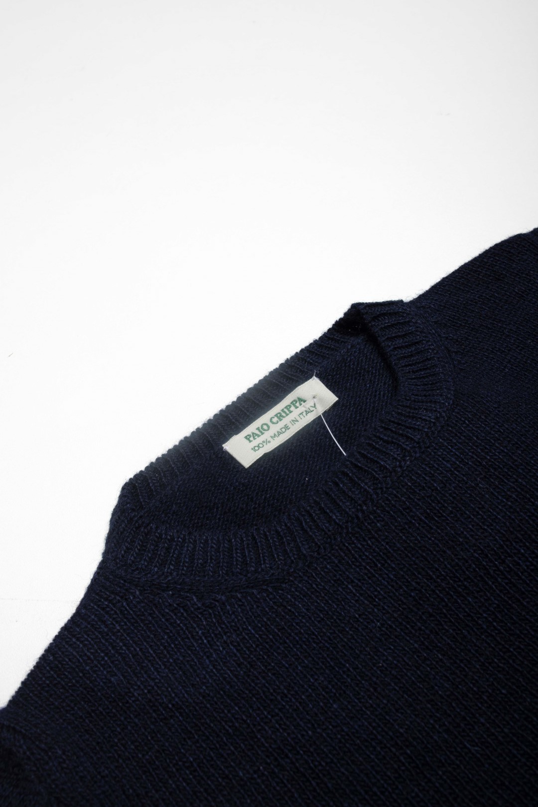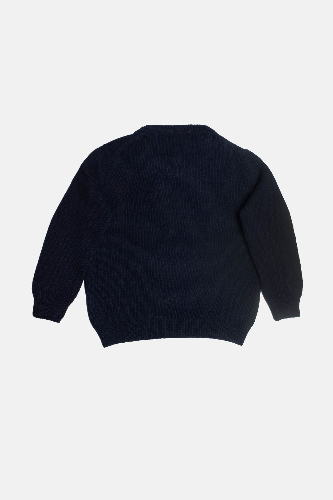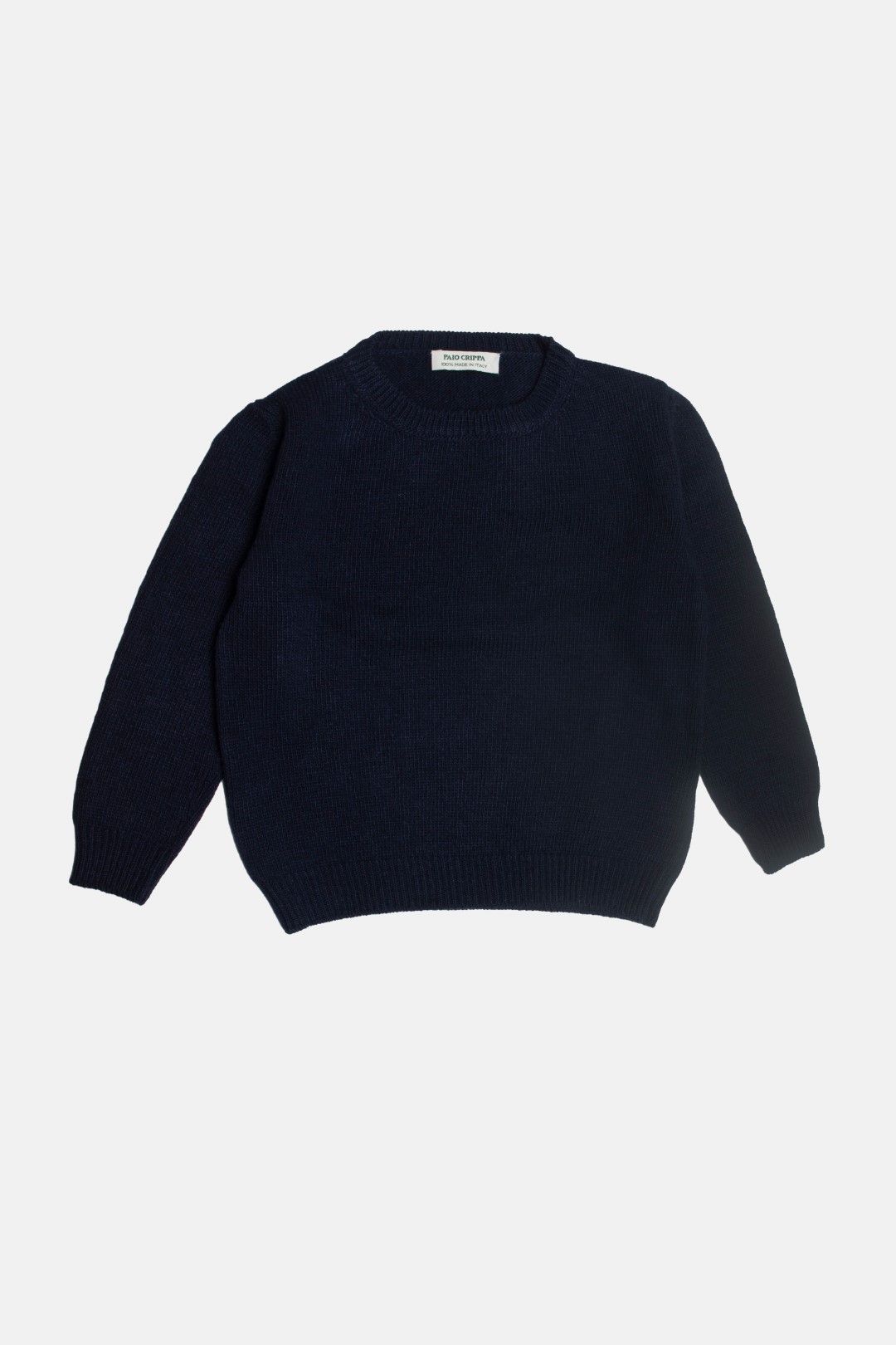 Classico, ma elegante e pratico, maglione girocollo in filato misto-cachemire blu, con il girocollo, i polsi e il bordo rifiniti a costa inglese. Modello Dobbiaco