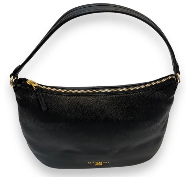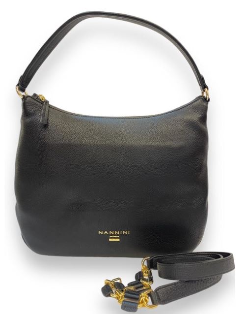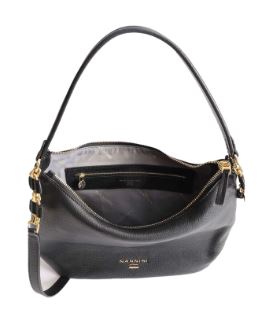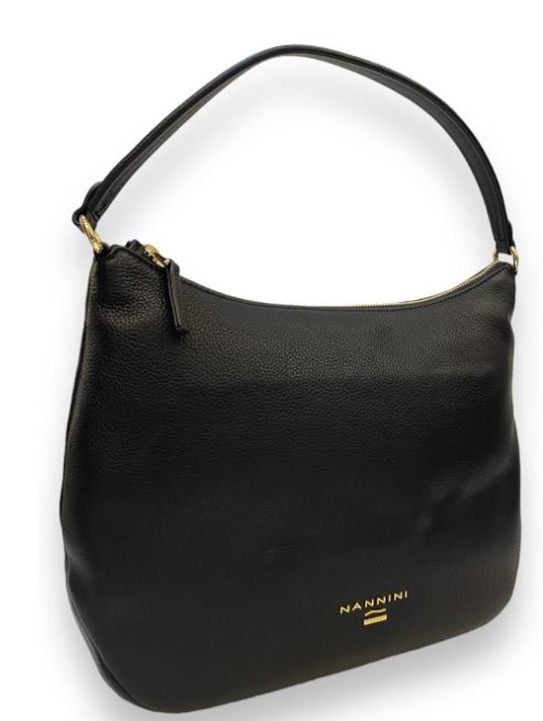 Nannini Borsa Vera Pelle Linea Yvonne NA18041 Caratteristiche Profonditร : 9,5 cm Larghezza: 37 cm Altezza: 25 cm Tasca esterna posteriore chiusa con zip Tracolla sotto braccio Tracolla lunga estraibile Tasca interna chiusa con zip Tasca interna grande porta cellulare aperta Dust bags Materiale Esterno: 100% Vera Pelle
