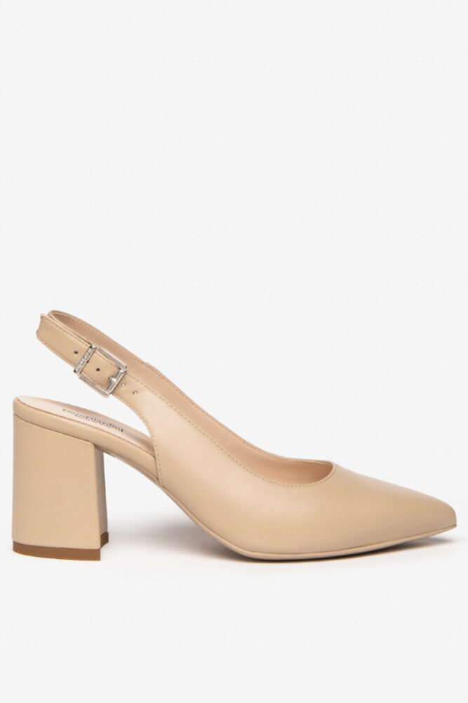 Chanel NeroGiardini realizzata interamente con ottimi pellami. Slingback a punta color Lino dal design sofisticato per un look elegante. Modello con tacco largo e fibbia per poter regolare la calzata. Scarpa donna cerimonia. Tacco 7,5 cm. Suola in gomma.
