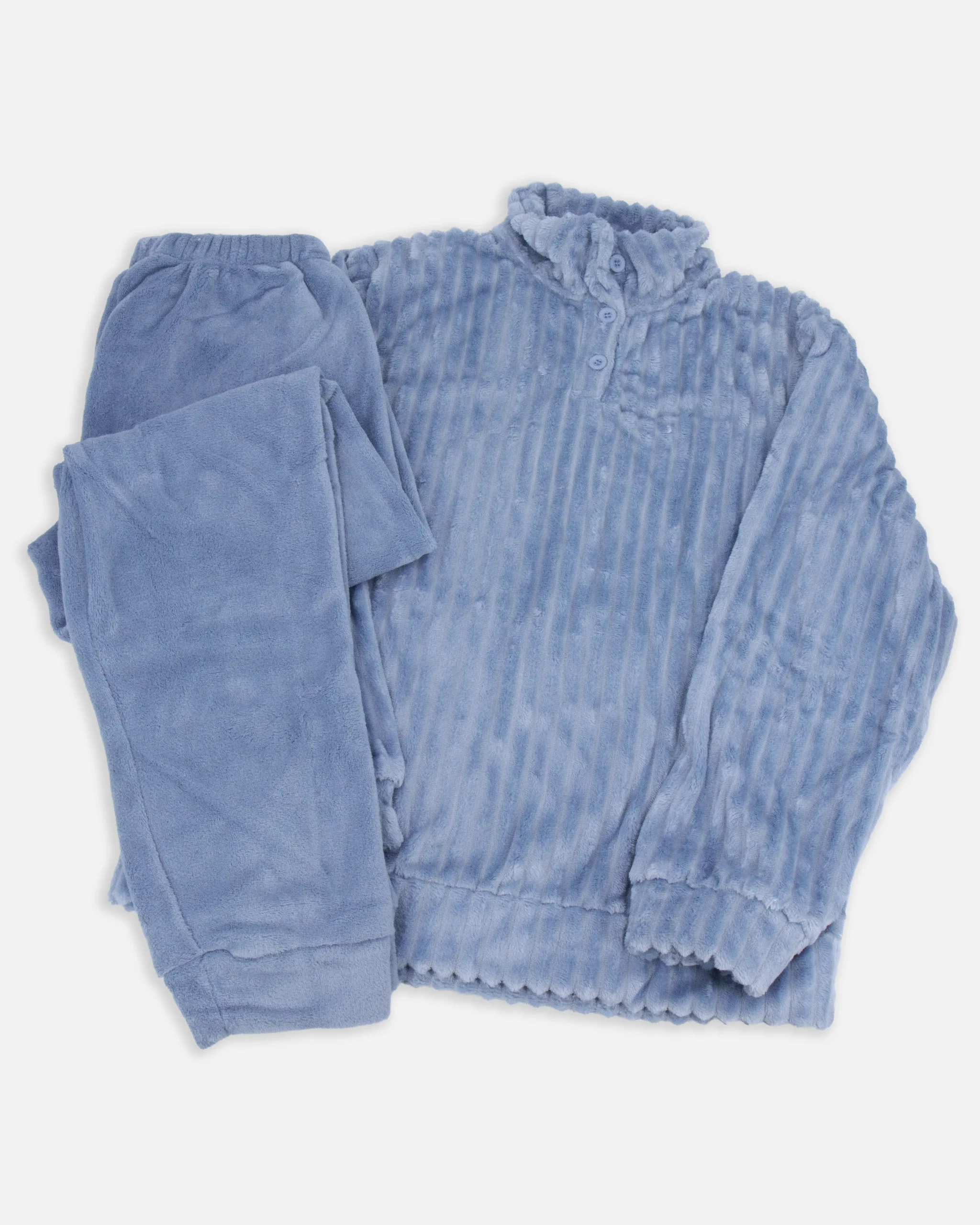 Morbidissimo pigiama/tuta in coral fleece Kissimoยฎ Maglia a costa larga con scollo tre bottoni. Maniche con polsini Pantalone in tinta unita con polsini Taglie: S-M-L-XL Colori: Verde Chiaro (azzurro), Rosa