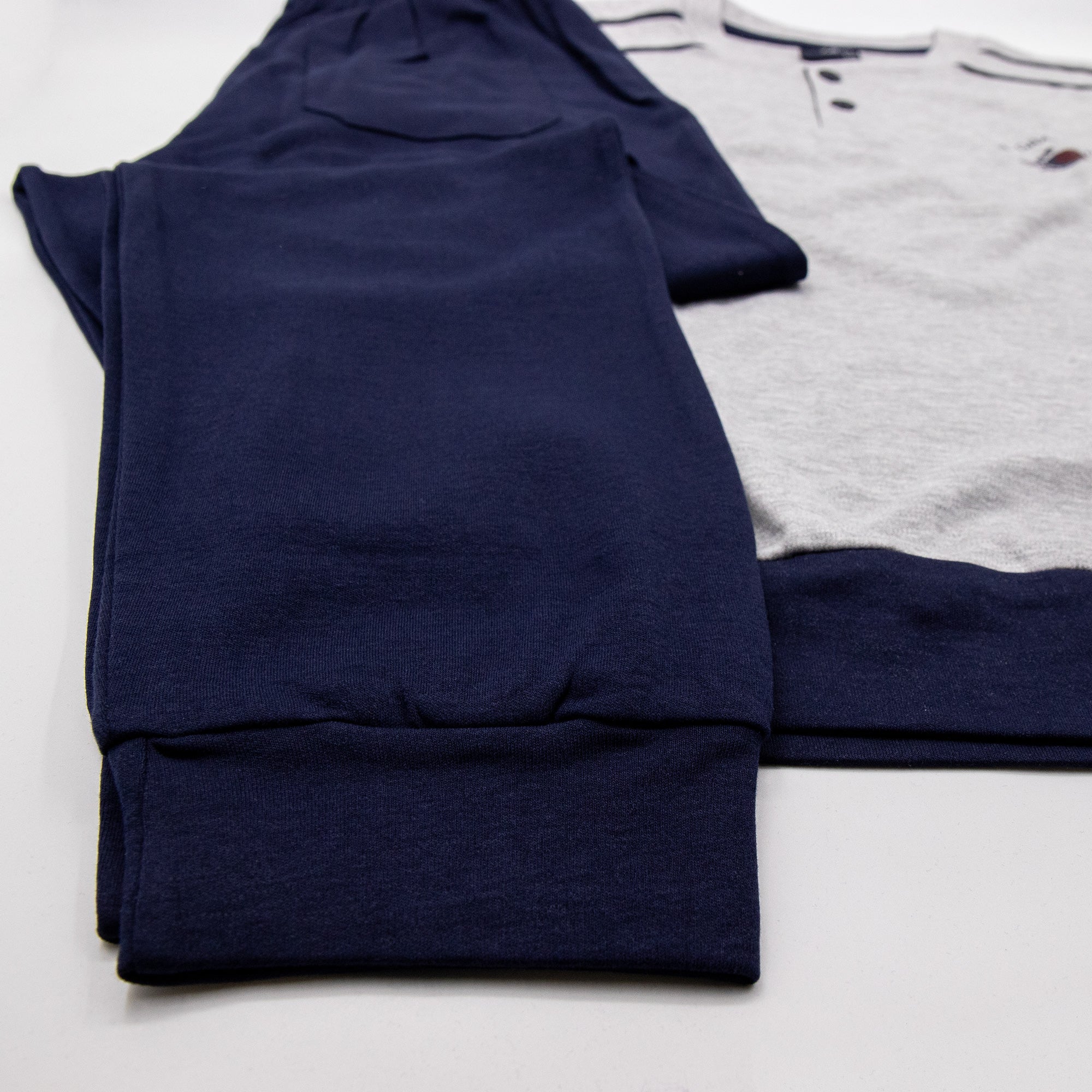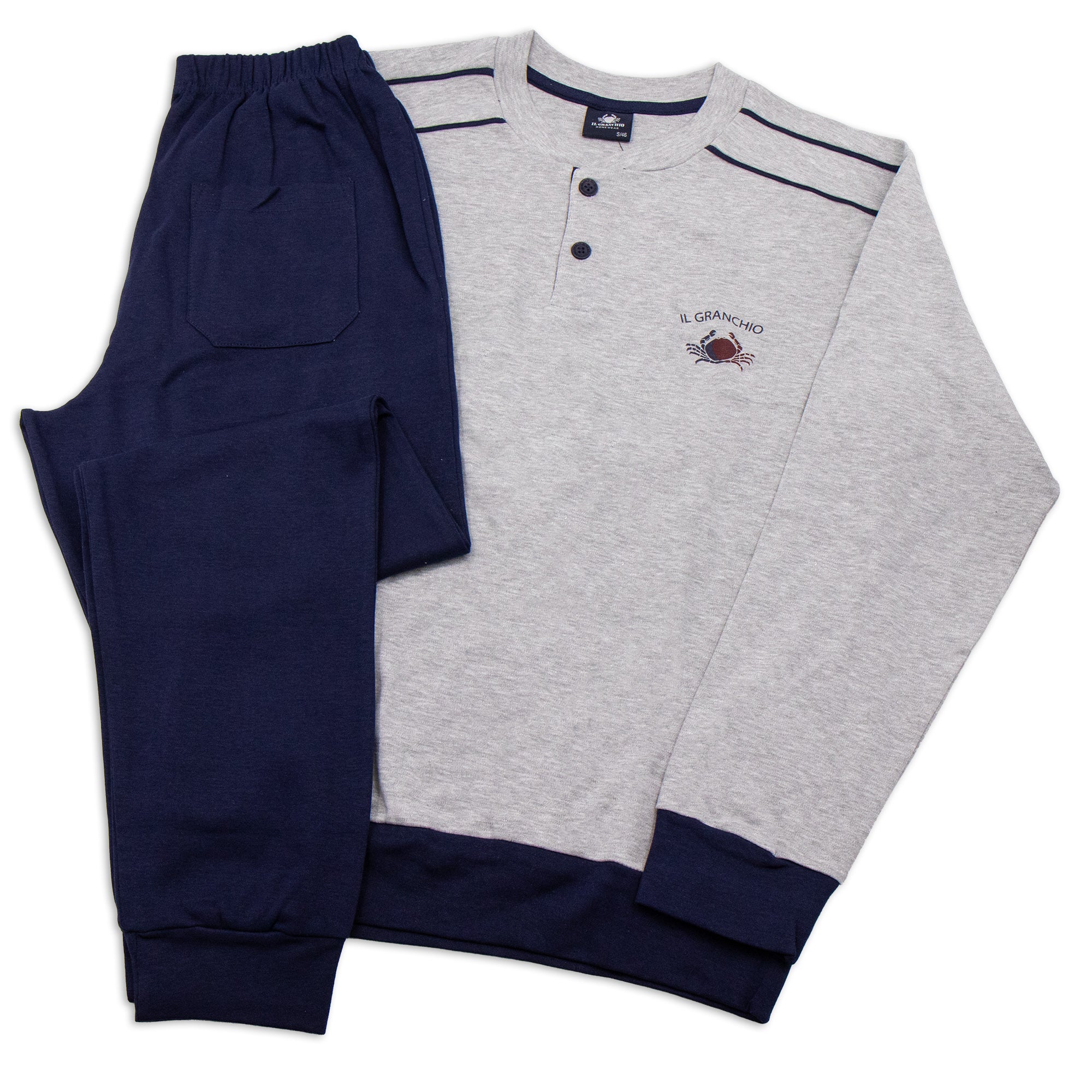 Pigiama in cotone interlock Il GranchioยฎPerfetto per la stagione autunno/inverno รจ morbido al tattoPantalone tinta unita con polsiniMaglia tinta unita, fascia in vita e maniche con polsini Taglie: M-L-XL-XXLColori: Ottanio, Grigio Melange