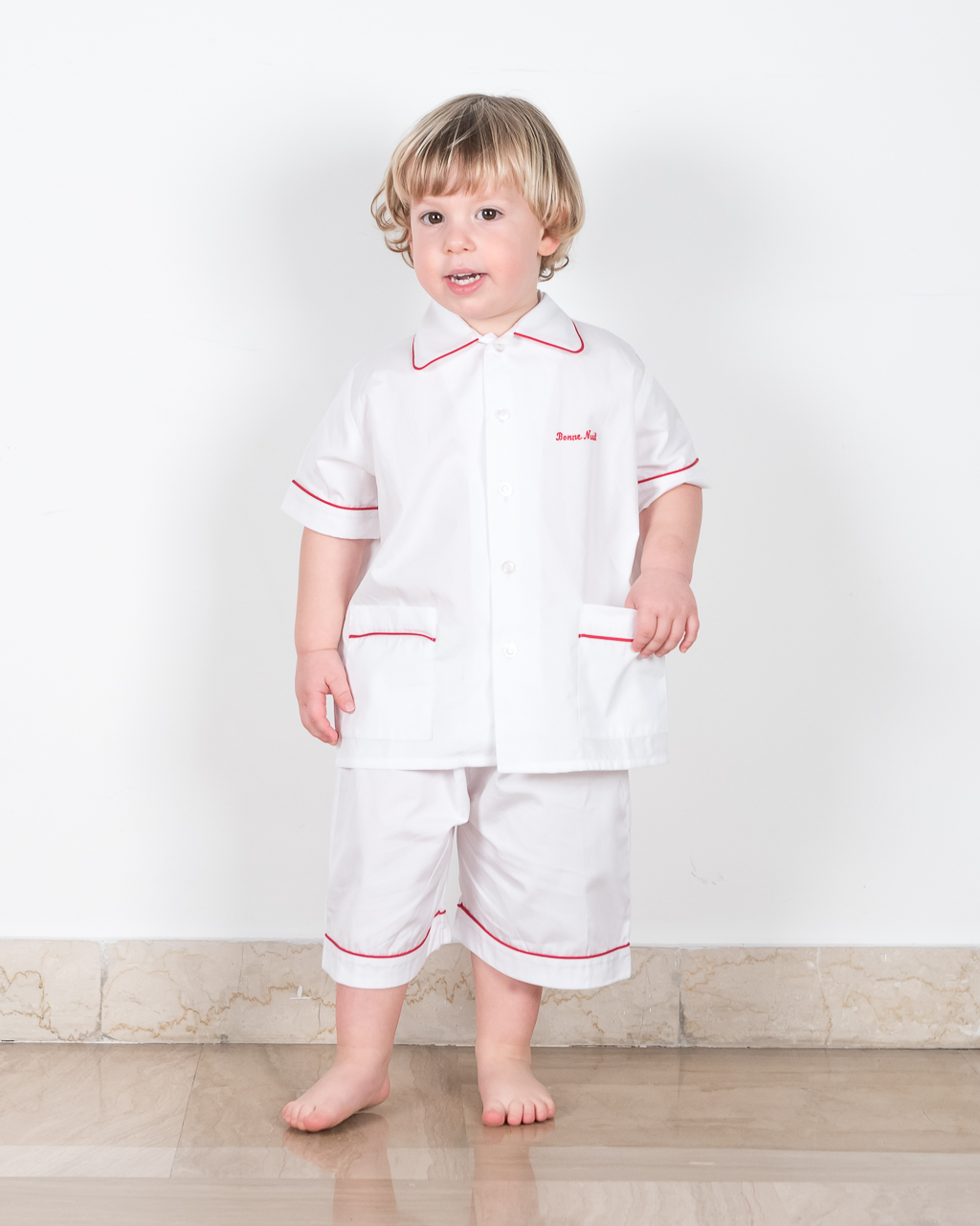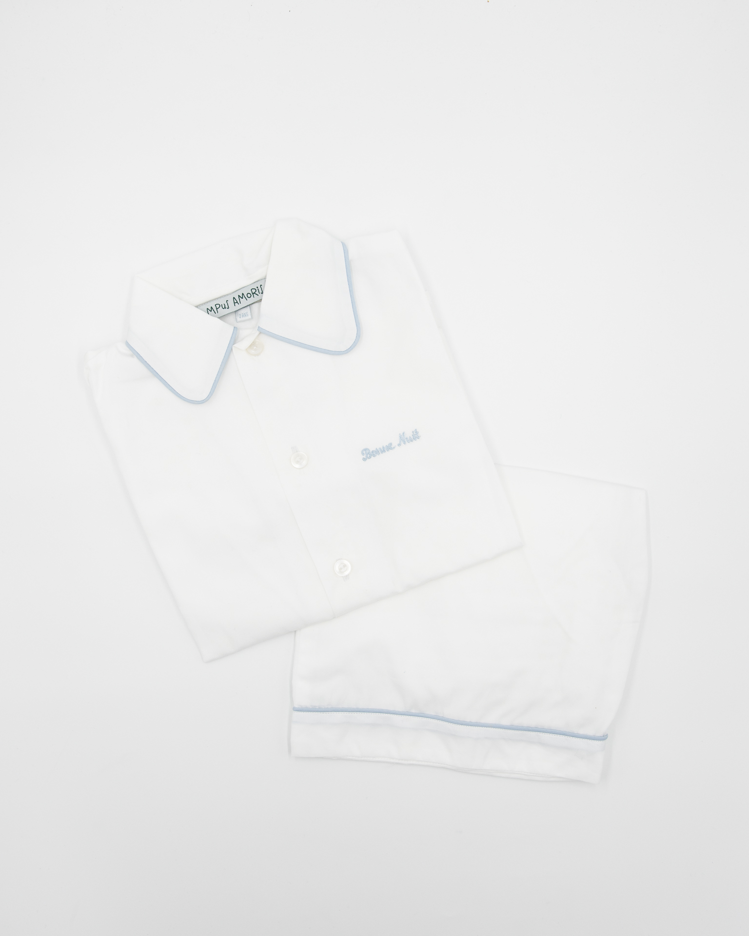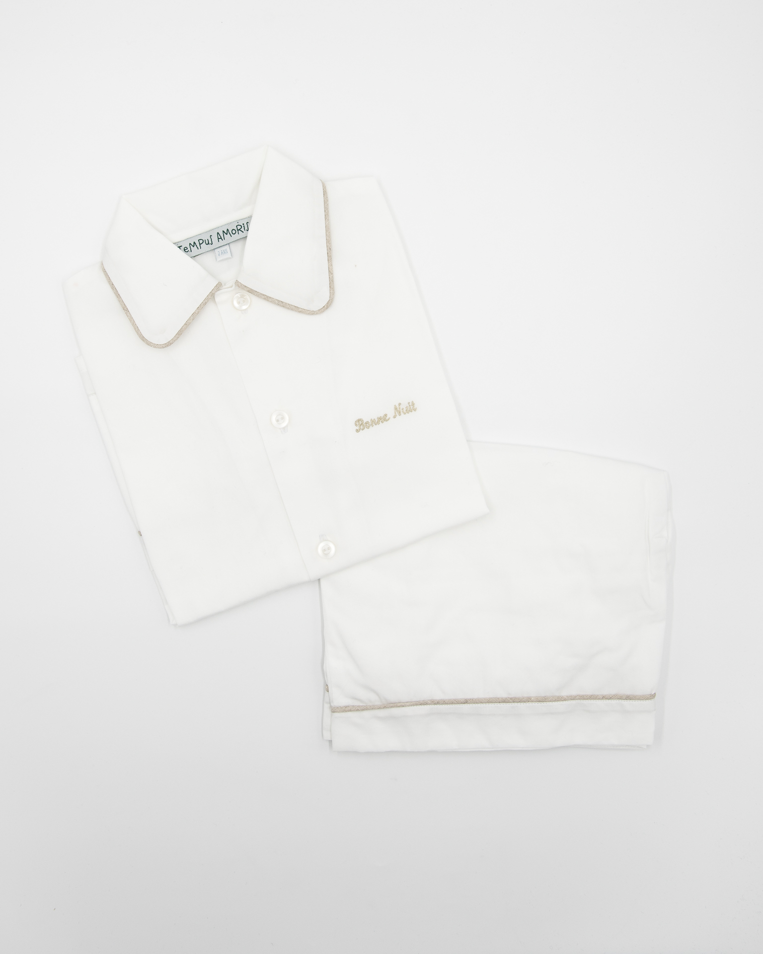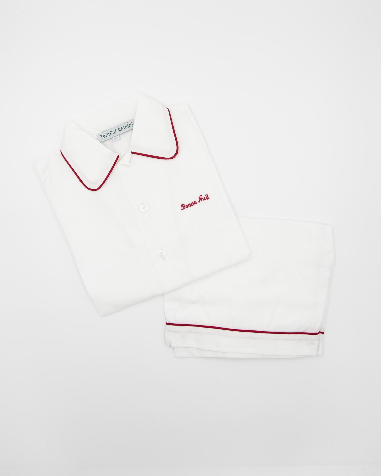 I pigiami Bonne Nuit sono realizzati in batista di cotone 100%, un tessuto leggero perfetto per la primavera e l’autunno, sono composti da un sopra modello camicia e un pantaloncino con profilo.