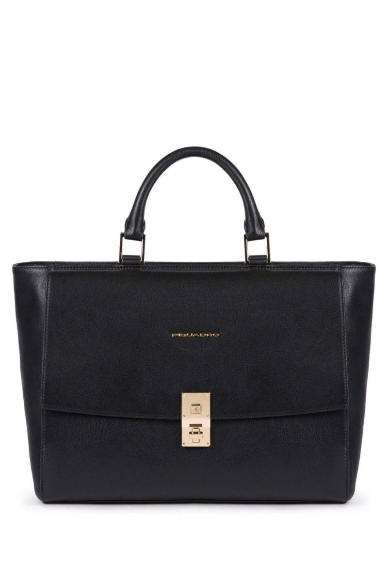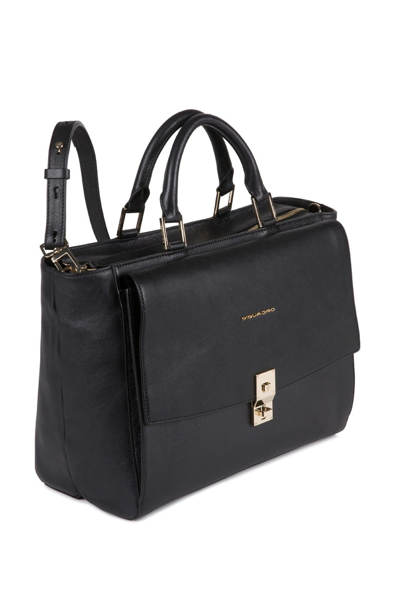Borsa da Lavoro/Studio PIQUADRO donna in pelle color Nero con tracolla removibile.