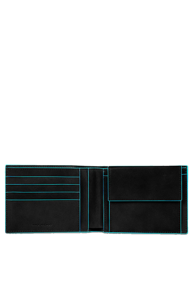 Portafoglio Piquadro uomo con porta monete, scomparti per carte e protezione anti frode RFID. Portafoglio della collezione Blue Square, realizzato in vitello con conciatura minerale, bordi a taglio vivo, dipinti a mano in azzurro che vivacizzano il carattere business della collezione e rappresentano un elemento distintivo di grande riconoscibilitร . Misure: 12.5 X 9.0 X 2.0 cm