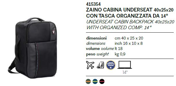 Roncato Move Soft Zaino Cabina Underseat RO415354 Roncato Move Soft Zaino Cabina Underseat Bagaglio a mano gratuito e omologato Ryanair Lo metti sotto la poltrona dell’aereo Cm 40x20x25 Tasca posteriore porta PC 14” 2 tasche frontali esterne Fascia posteriore per impilare lo zaino su un trolley Maniglia Superiore e Laterale Spallaci regolabili Capienza Litri 18 […]