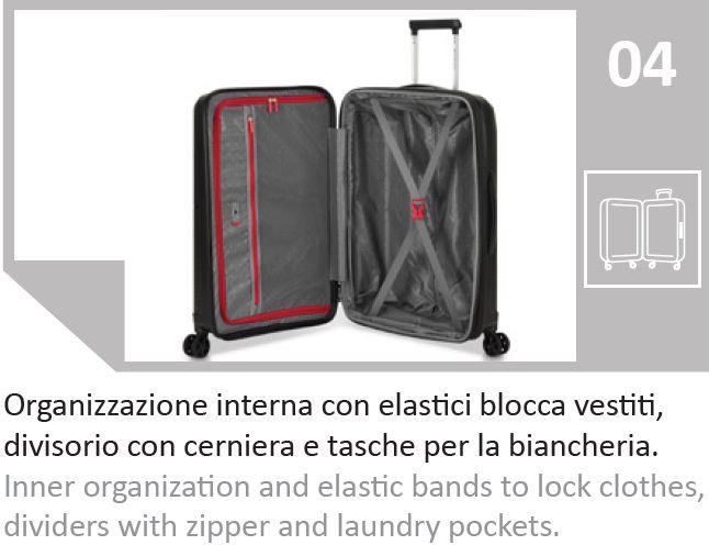 Roncato Storm Trolley Grande 4 Ruote RO419411 Caratteristiche: Altezza: 76 cm Lunghezza: 52 cm Larghezza: 30 espandibile a 35 cm Peso: 4,4 kg Capacitร : 110/129 L ( 20/25 Kg di Biancheria ) Garanzia : 3 anni su tutti i vizi di fabbrica 4 Ruote doppie piroettanti con sistema per la protezione dagli urti. Lucchetto TSA […]