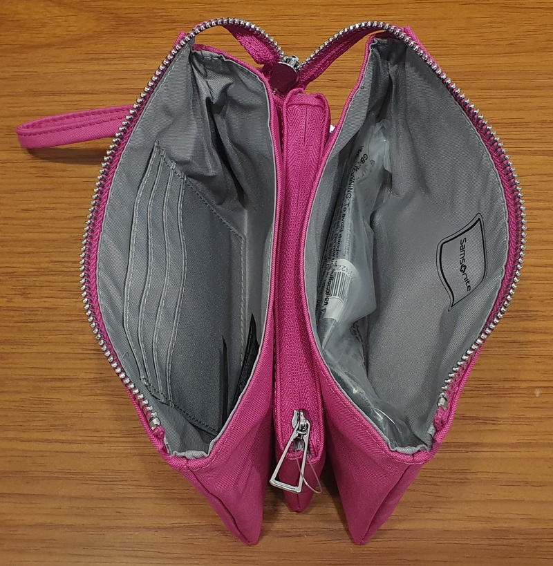 SA154050 Samsonite Linea POUCHY POUCHY TRIPLE POUCH M Cm 18 X 12 X 3,5 Chiusura principale con cerniera a lampo. Interni: 3 scomparti di cui il centrale chiuso con zip nel primo scomparto 4 tasche porta carte di credito