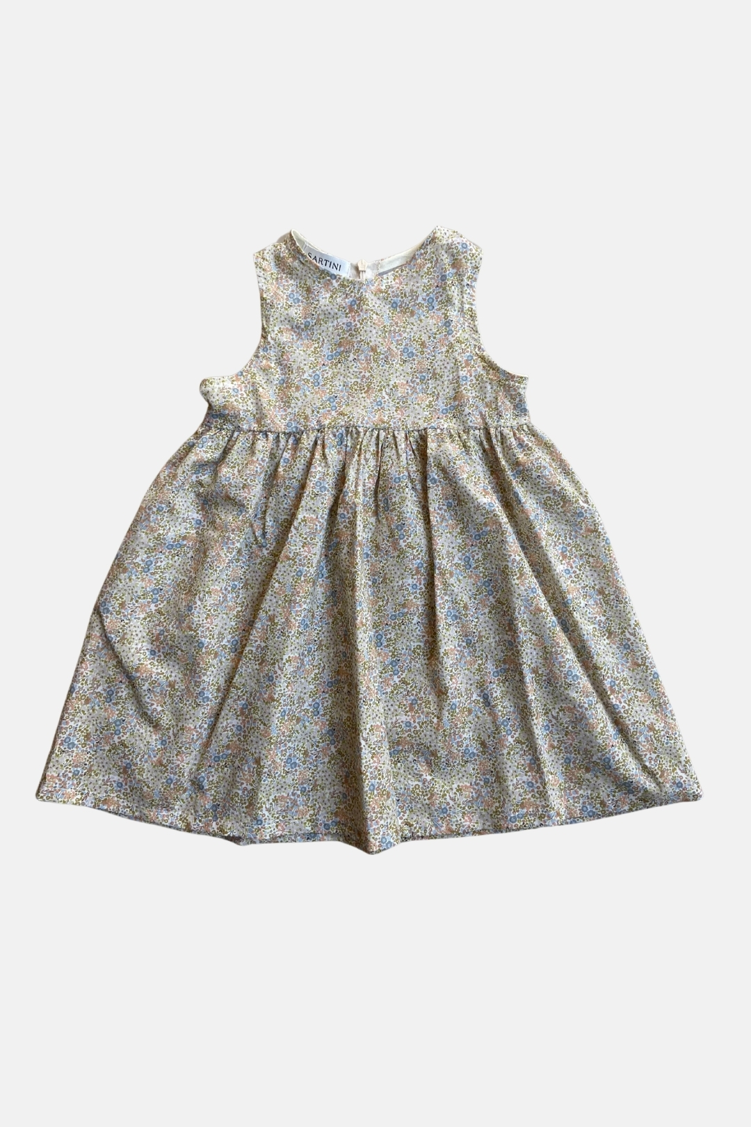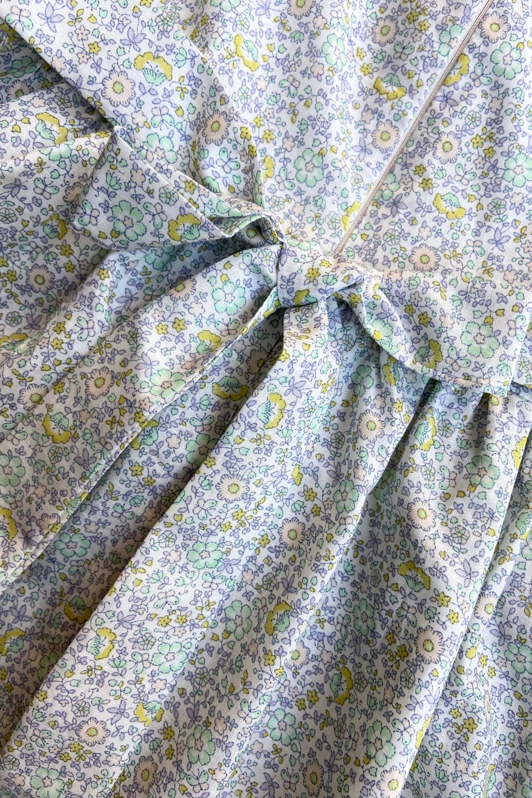 Scamiciato Sartini in cotone fiorato ideato e realizzato da Kiki&Isa. Questo modello arricciato in vita ha una cintura che si lega dietro a fiocco e si chiude con una cerniera a scomparsa. Il modello è un classico senza tempo da sempre pratico ed elegante.