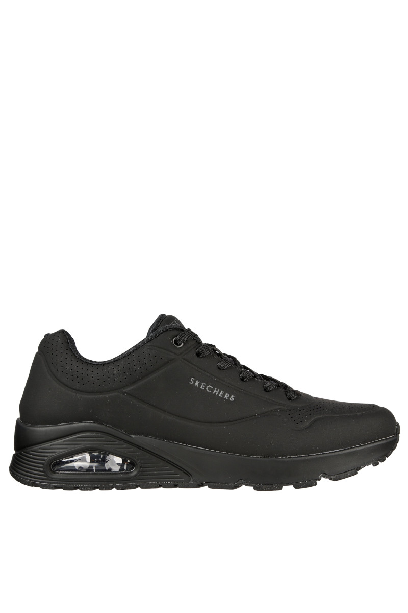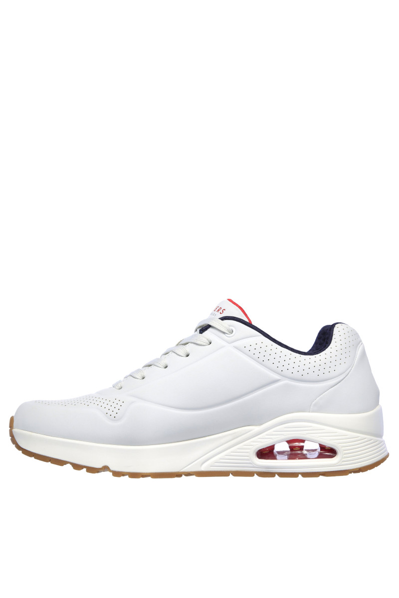 Lo stile classico con imbottitura ad aria viene rivisitato nella scarpa Skechers Streetโข Uno – Stand on Air. Questo modello stringato di tendenza presenta una tomaia sintetica traforata liscia con soletta Air Cooled Memory Foamยฎ e intersuola ammortizzata ad aria con tecnologia visibile Skech-Airยฎ