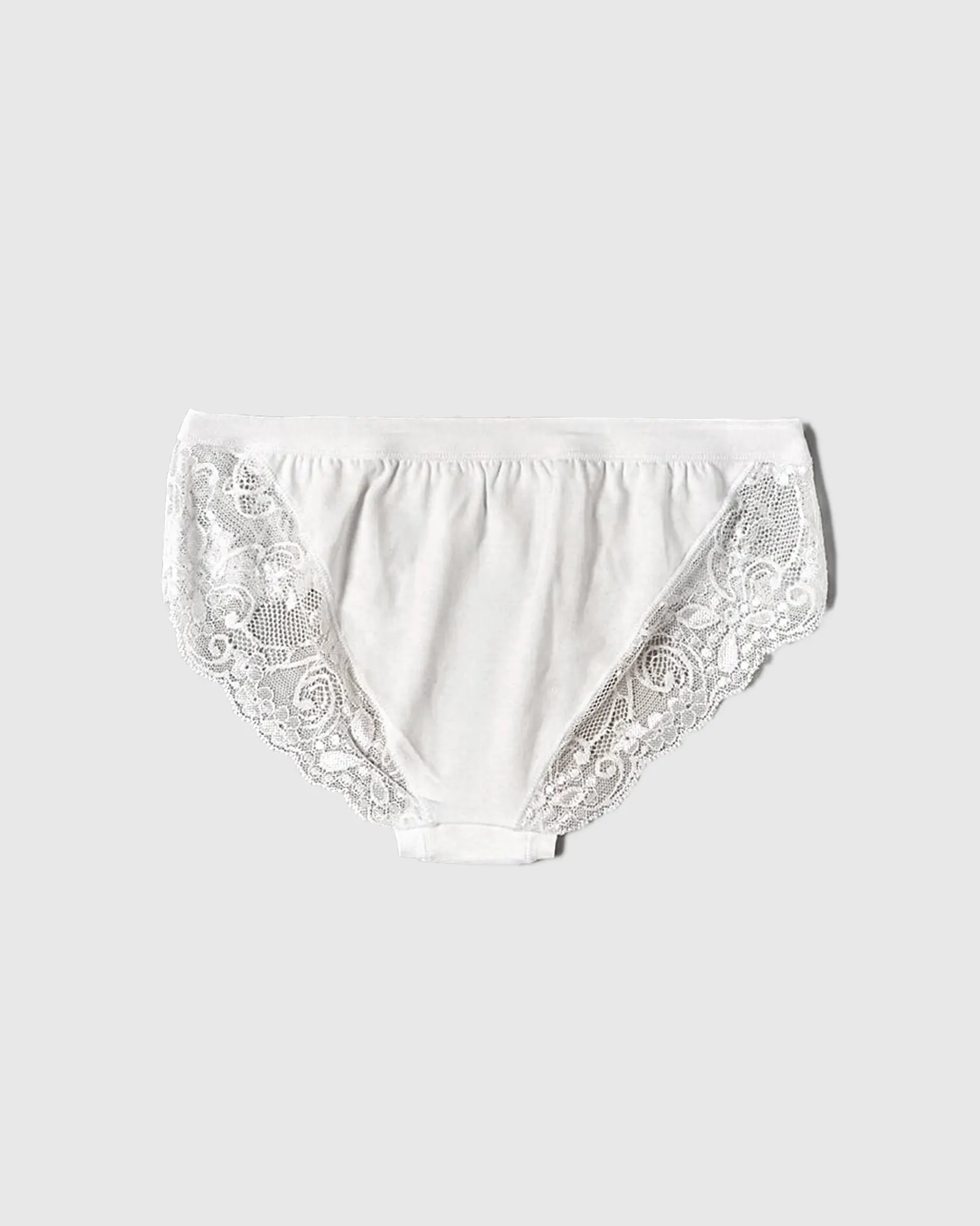 Bordo in cotone e morbido pizzo nel giro gamba, per un comfort assicurato senza rinunciare a raffinati dettagli.