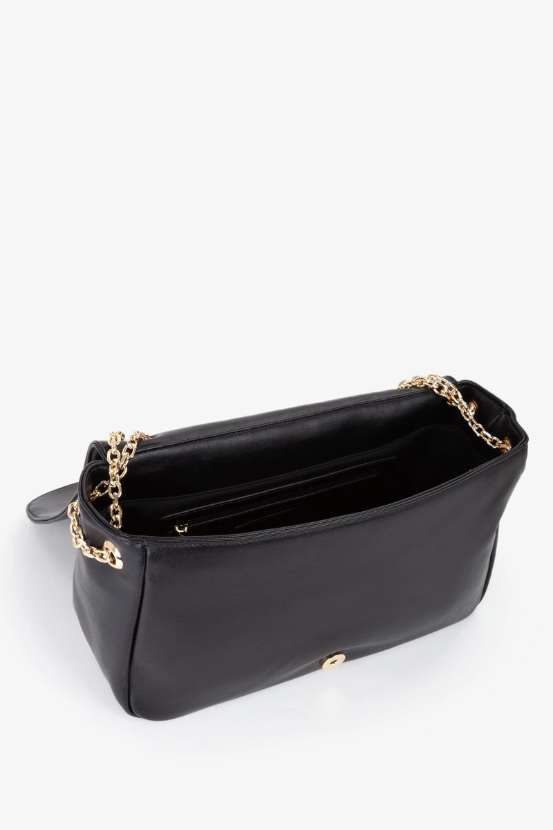 Borsa a spalla Mario Valentino con logo in metallo sulla pattina davanti, caratterizzato dall’ aggiunta di un ciondolo portachiavi gommato che richiama il brand. Splendida e adatta ad ogni stagione, da indossare a spalla o a tracolla. Basterร  far scorrere il manico in catena per adattare la borsa ad ogni evenienza. Misure: 18x30x10 cm