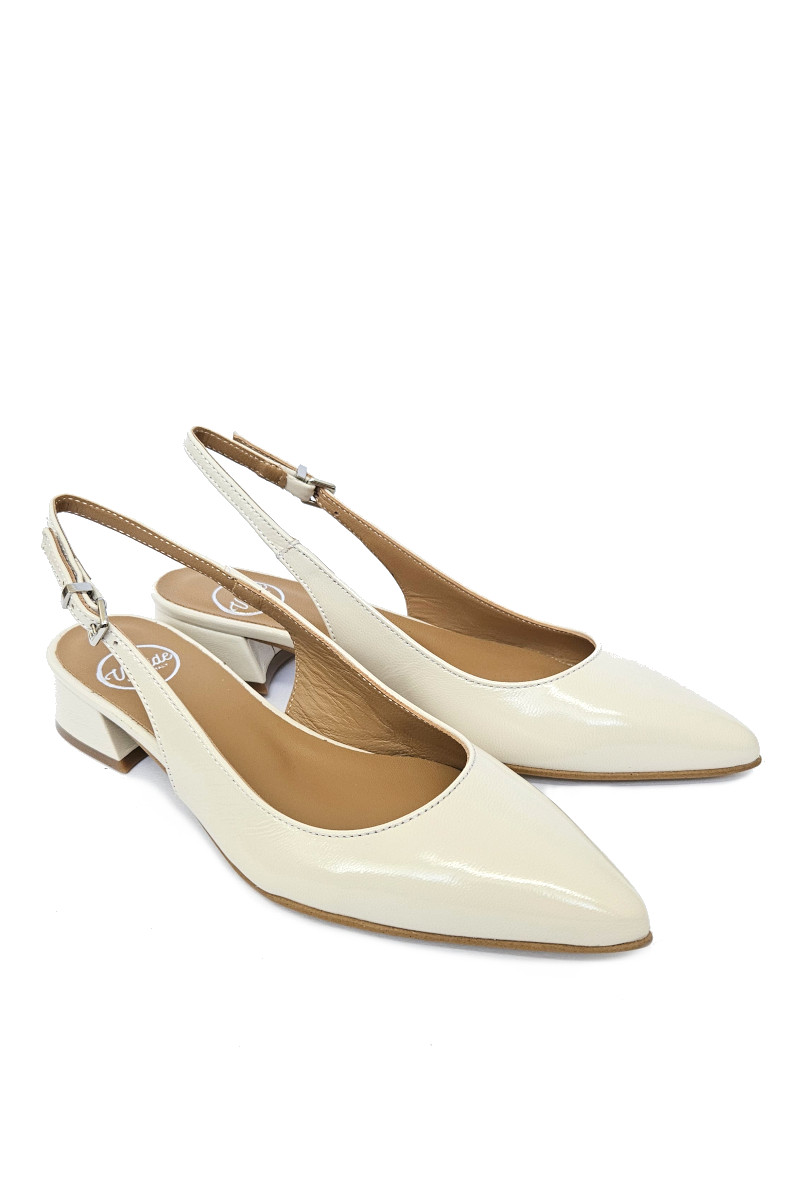 Slingback Velaide realizzata in pelle lucida color burro. La scarpa perfetta per la mezza stagione, da indossare in ogni occasione. Dal lavoro alla cerimonia, questa scarpa racchiude eleganza e comoditร . Tacco 3 cm