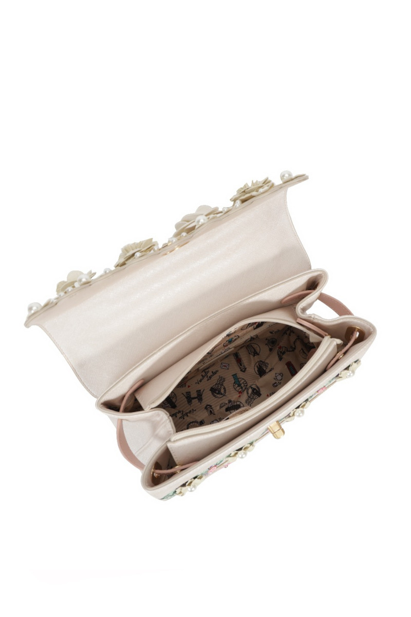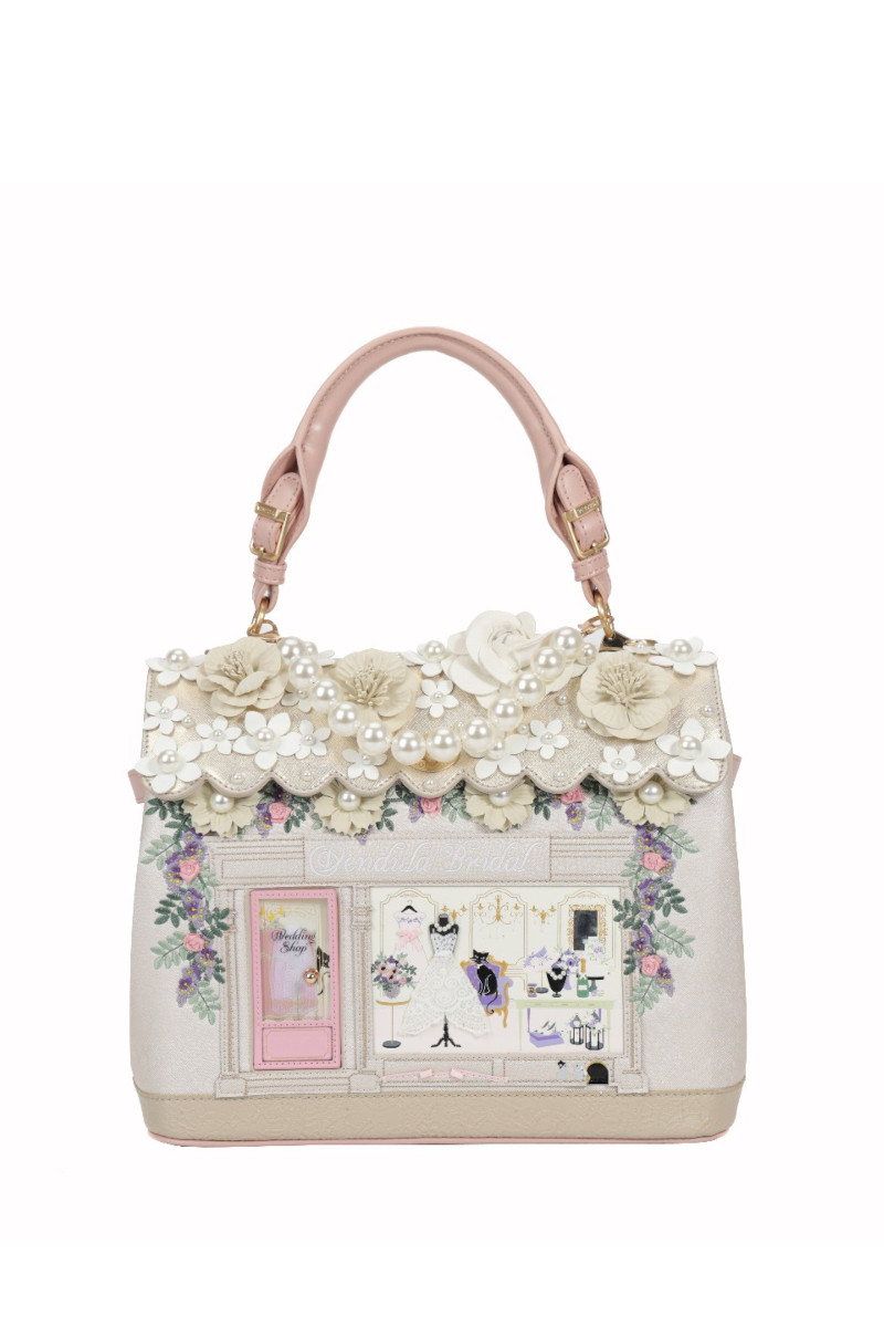 La Borsa Grace The Wedding Shop può contenere tutto ciò di cui hai bisogno ogni giorno. È realizzata in pelle vegana e include con due manici (quello originale e un manico di perle) che puoi agganciare o staccare a seconda dell’occasione. È dotata anche di una tracolla staccabile e regolabile, così puoi portare la borsa a tracolla o a spalla. Sarà difficile resistere a questa meravigliosa opera d’arte. Misure: 30x24x14 cm