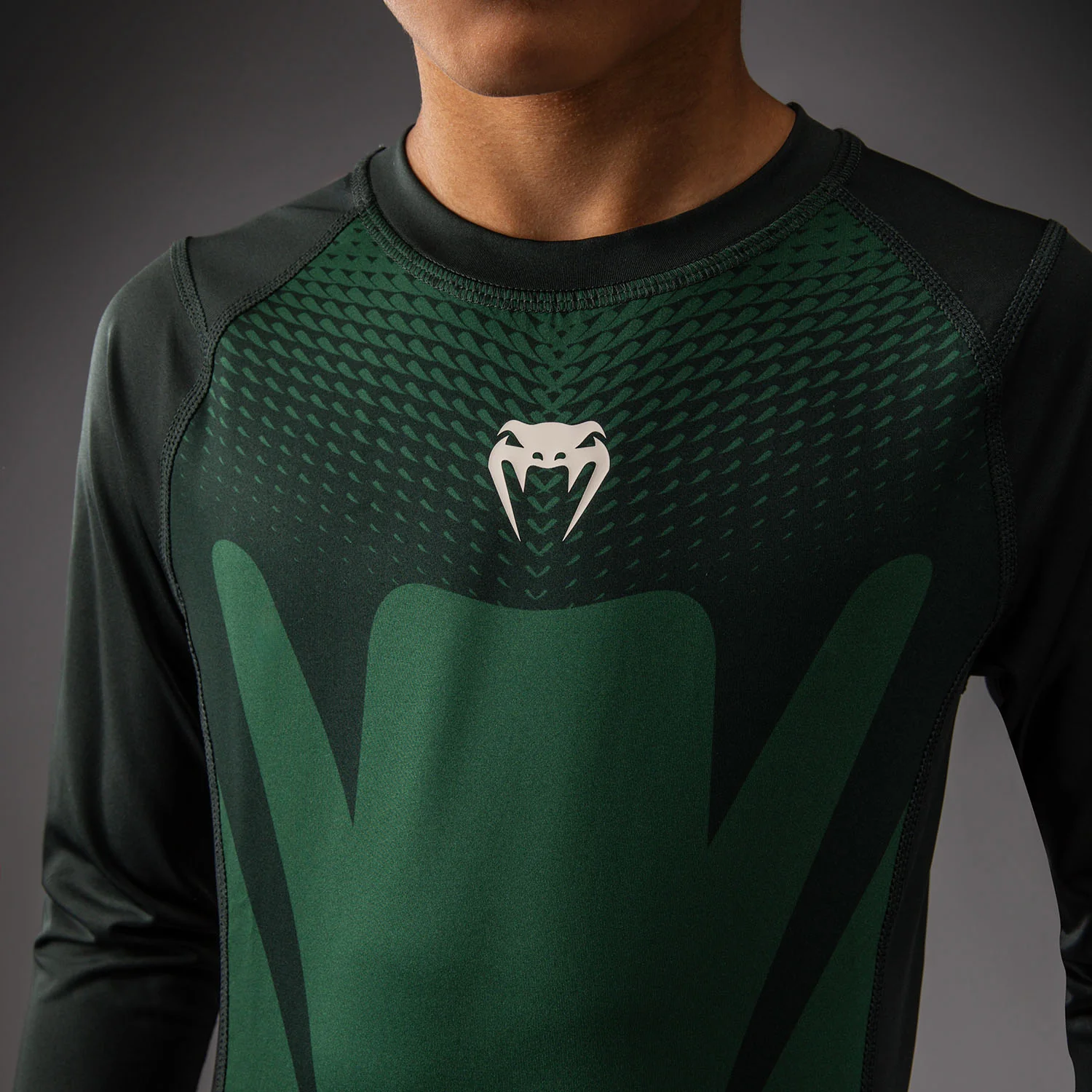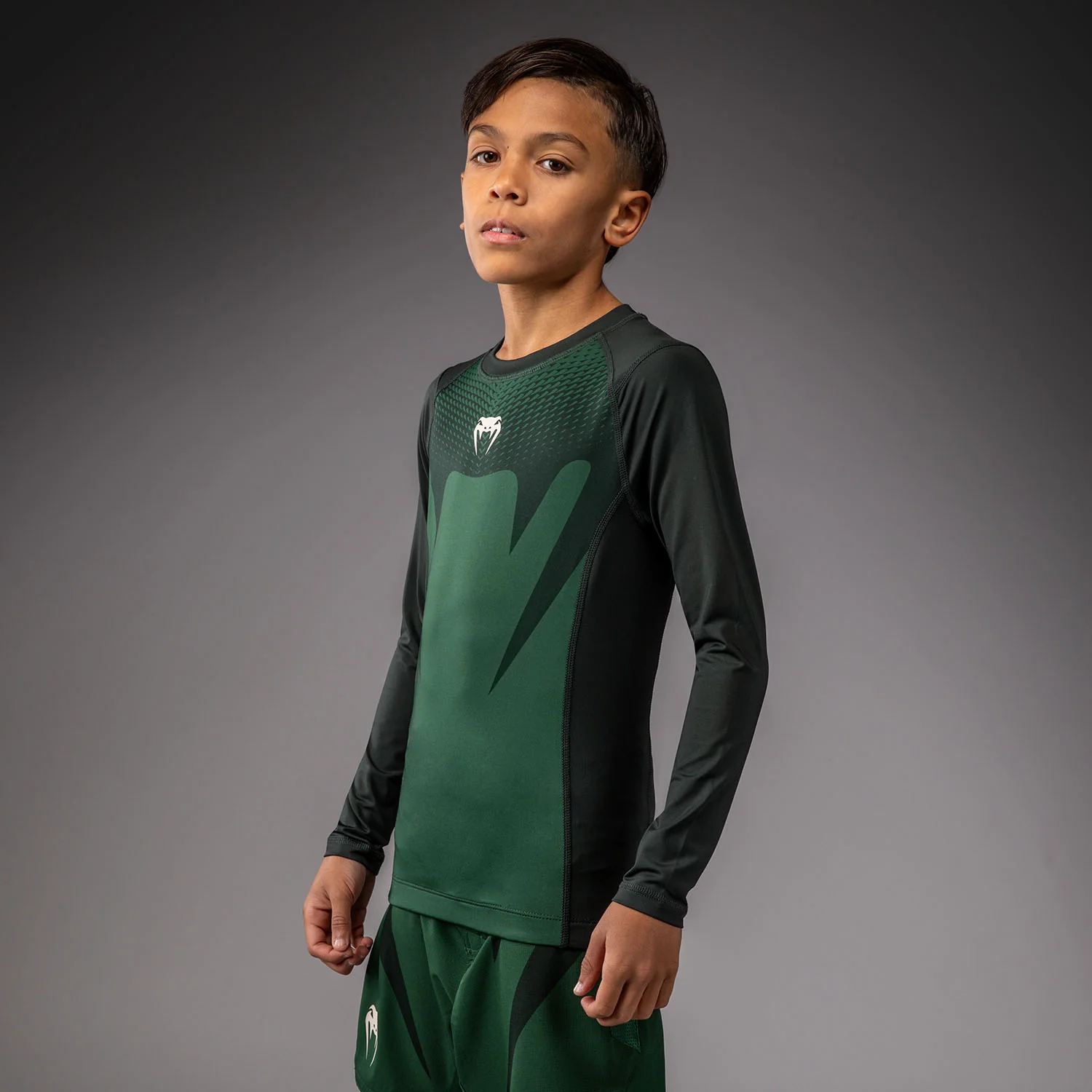 Venum Attack Rashguard a manica lunga per bambini – Verde foresta/ Bianco sporco