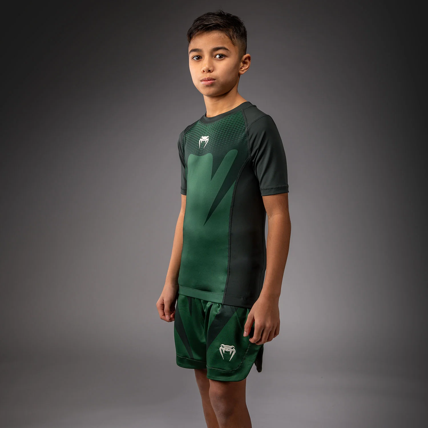 Venum Attack Rashguard a maniche corte per bambini – Verde foresta/ Bianco sporco