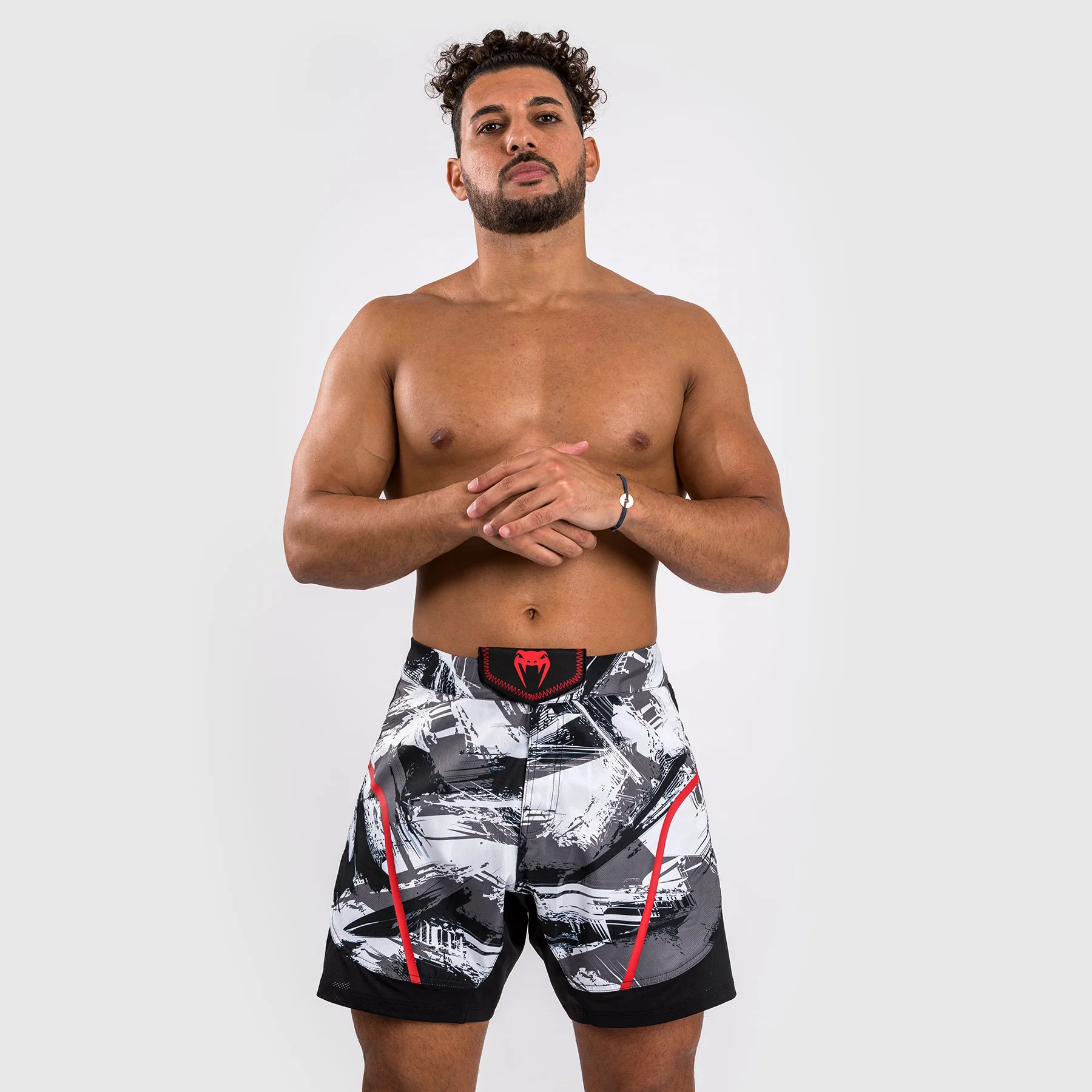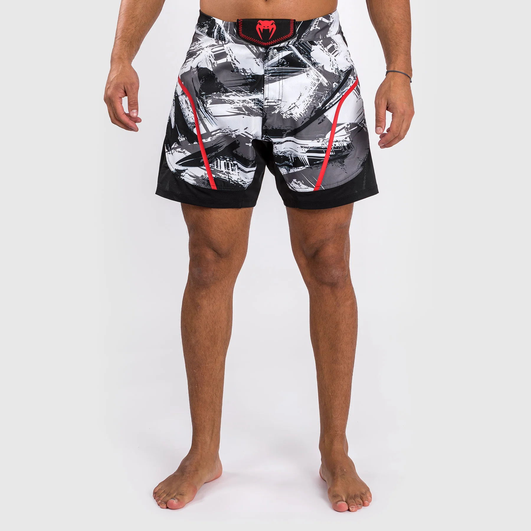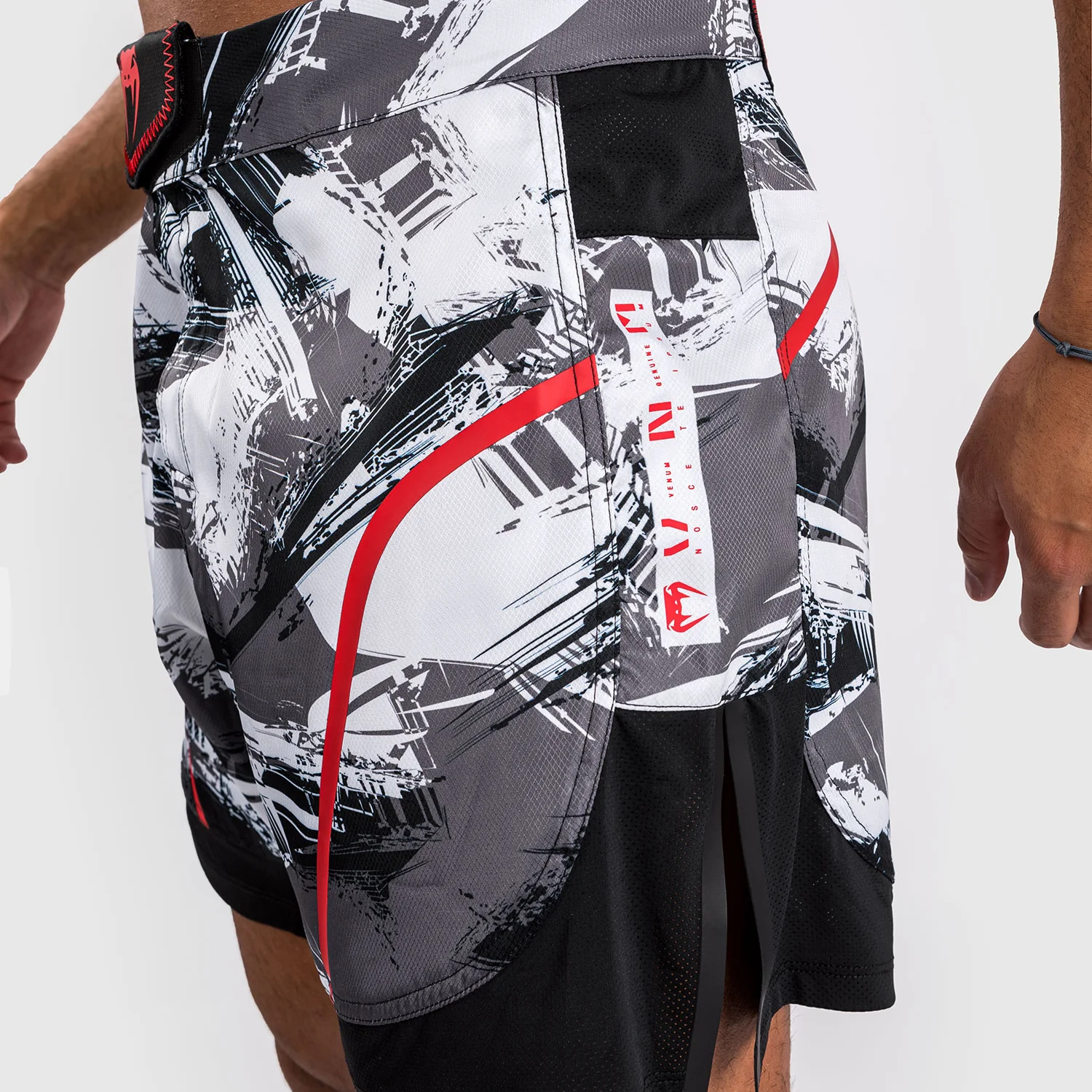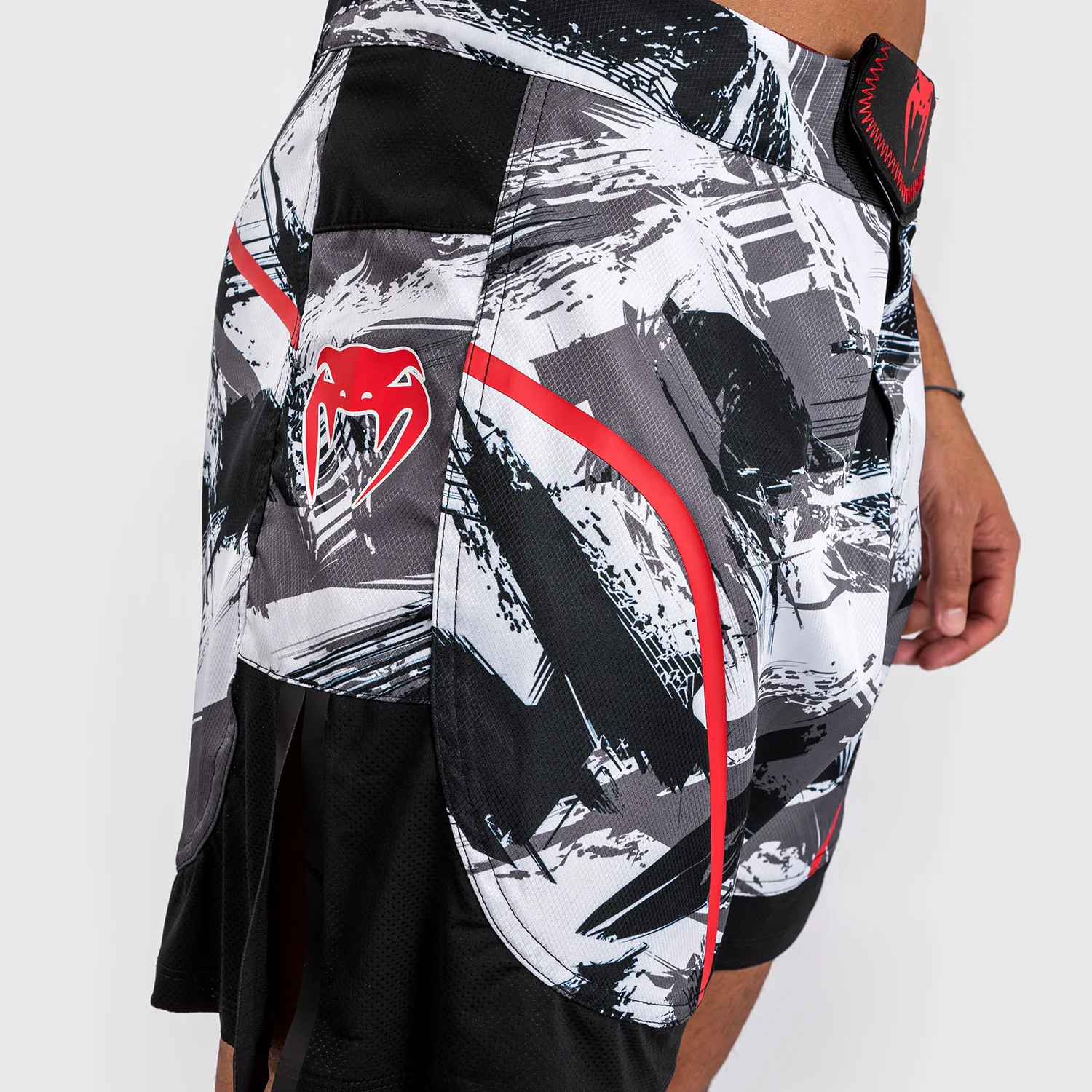 La stampa mimetica a pennello in Gris/Rouge offre uno stile urbano, con il logo Venum in argento sulla parte anteriore della cintura e sul lato della gamba.