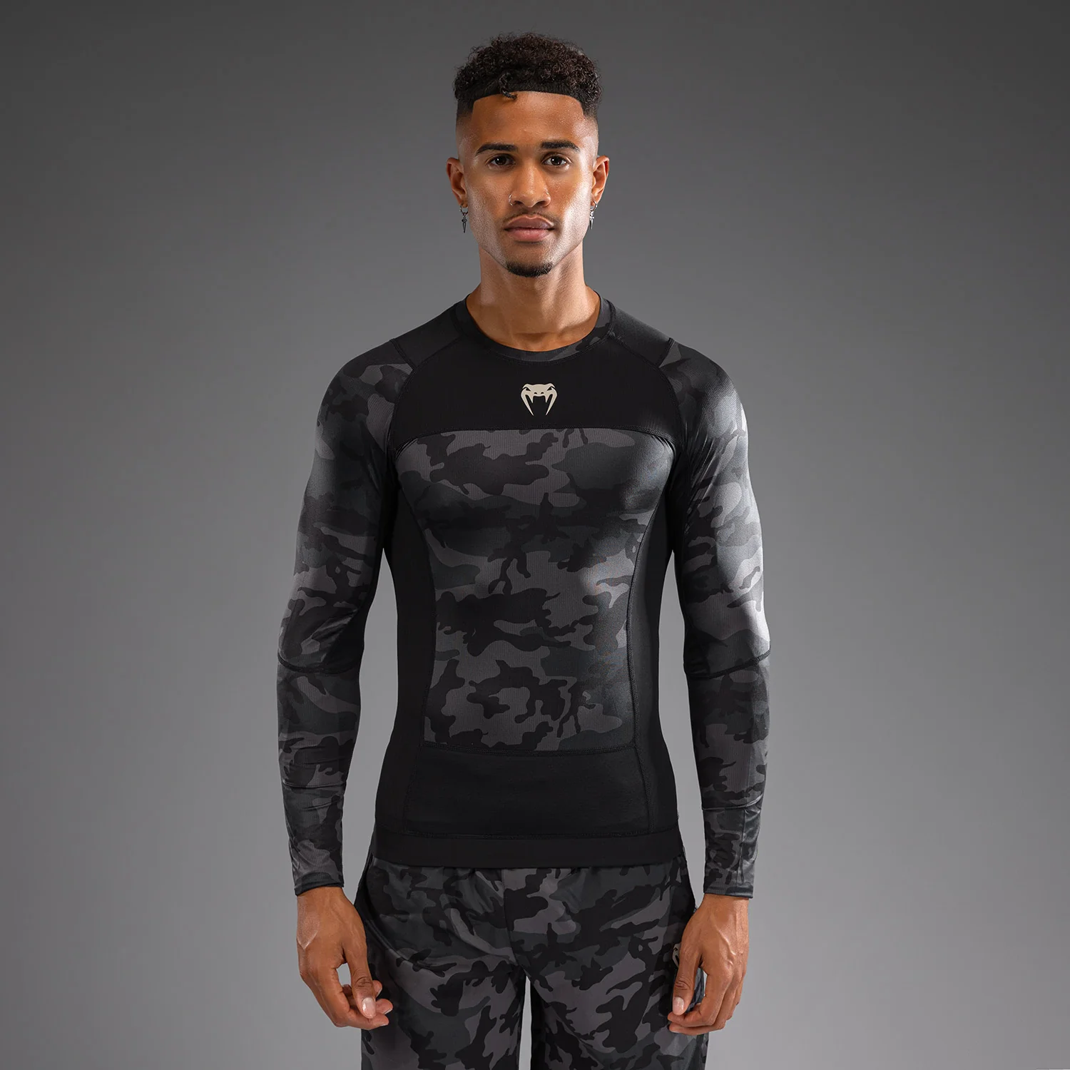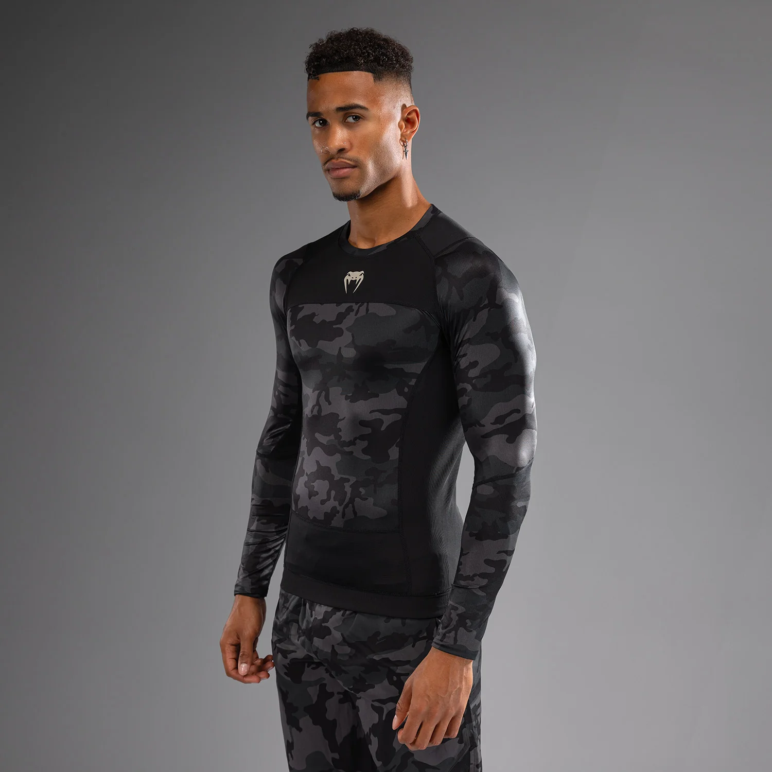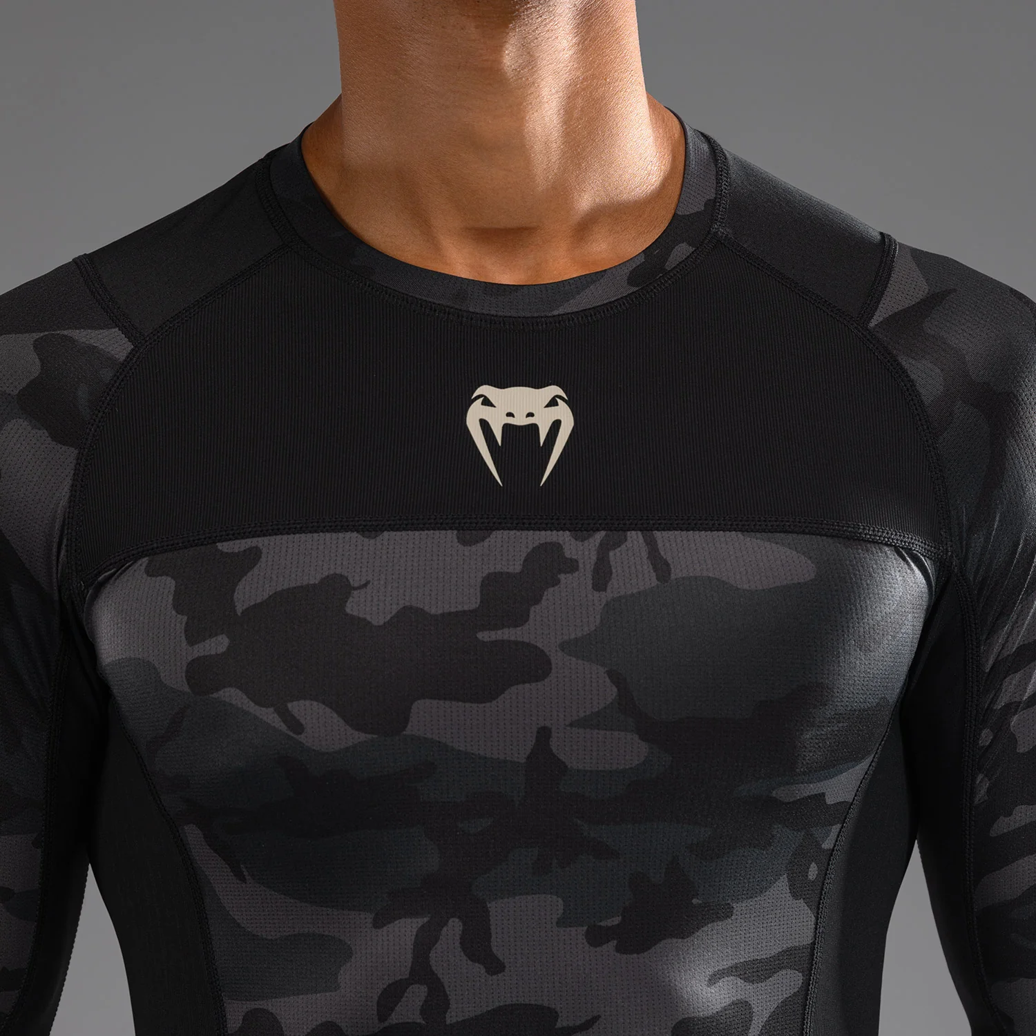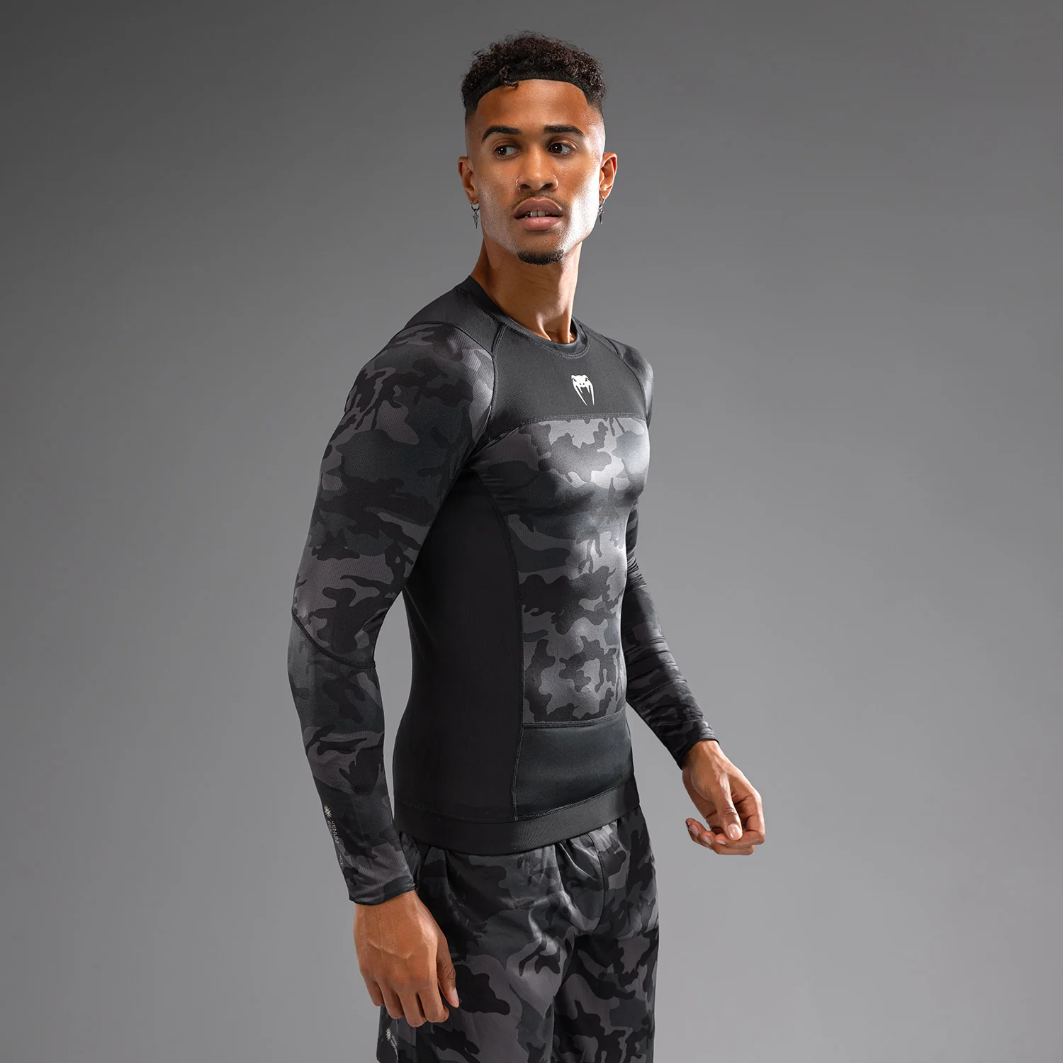 Il design moderno e sobrio del Rashguard a maniche lunghe Venum G-Fit Air in Digital Urban Camo si abbina perfettamente ai pantaloni da combattimento e agli spats della stessa collezione.